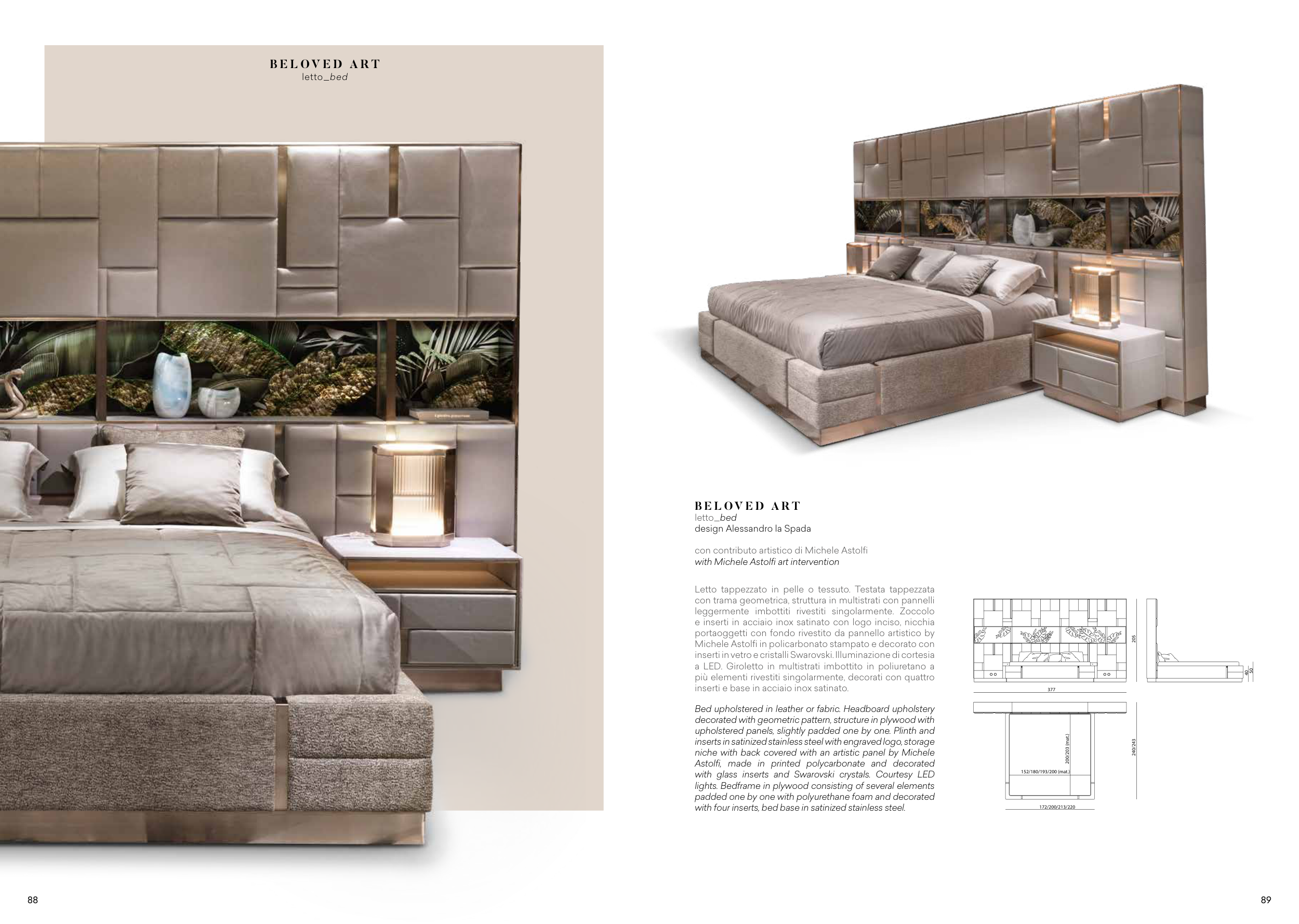 Bed upholstered in leather or fabric. Headboard upholstery
