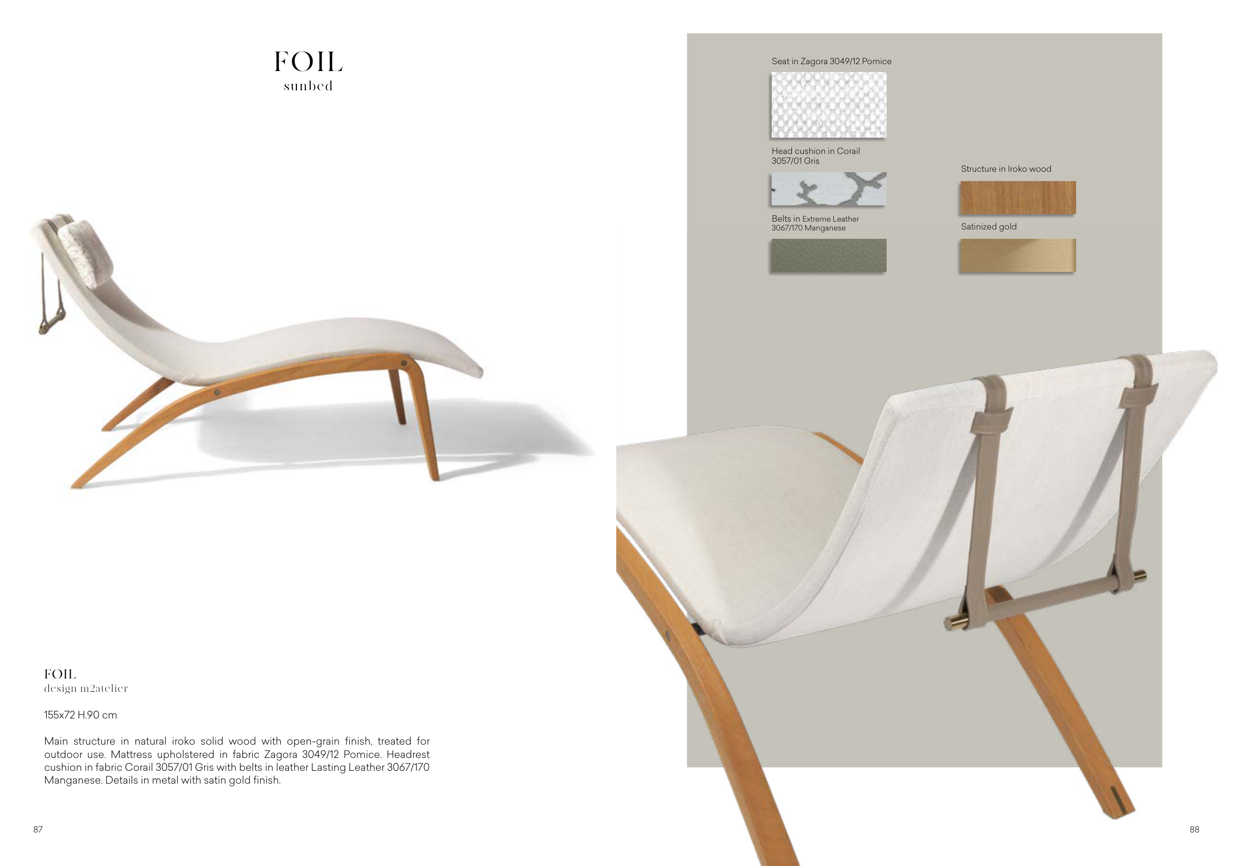 outdoor use. Mattress upholstered in fabric Zagora 3049/12 Pomice. Headrest