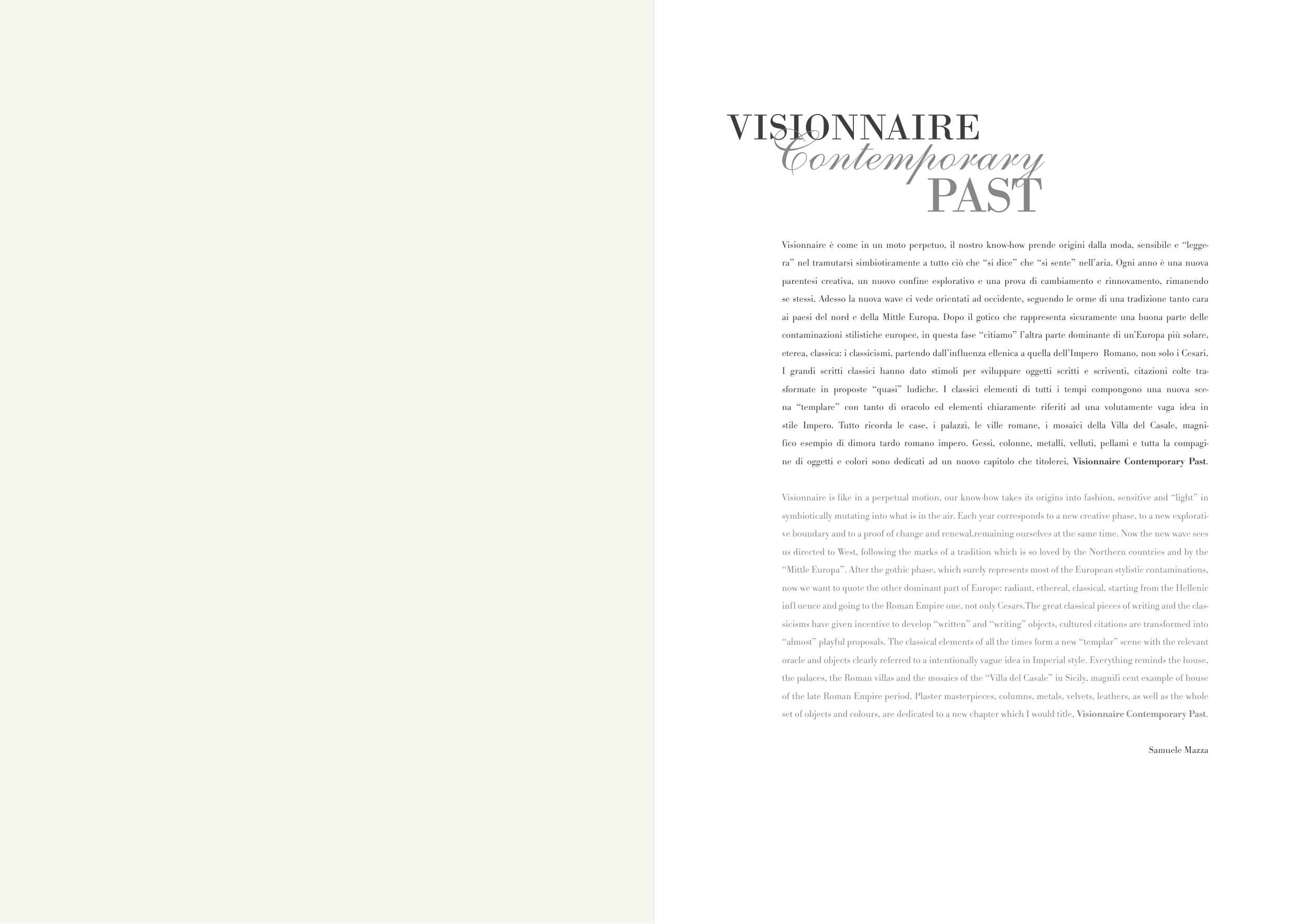 ne di oggetti e colori sono dedicati ad un nuovo capitolo che titolerei, Visionnaire Contemporary Past.