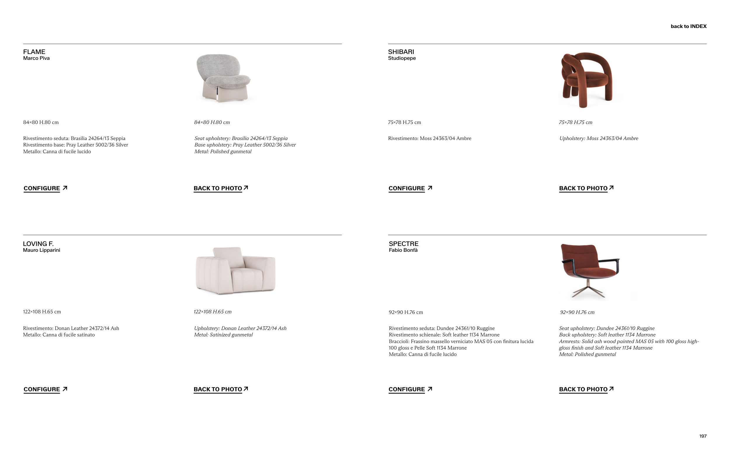 Back upholstery: Soft leather 1134 Marrone
