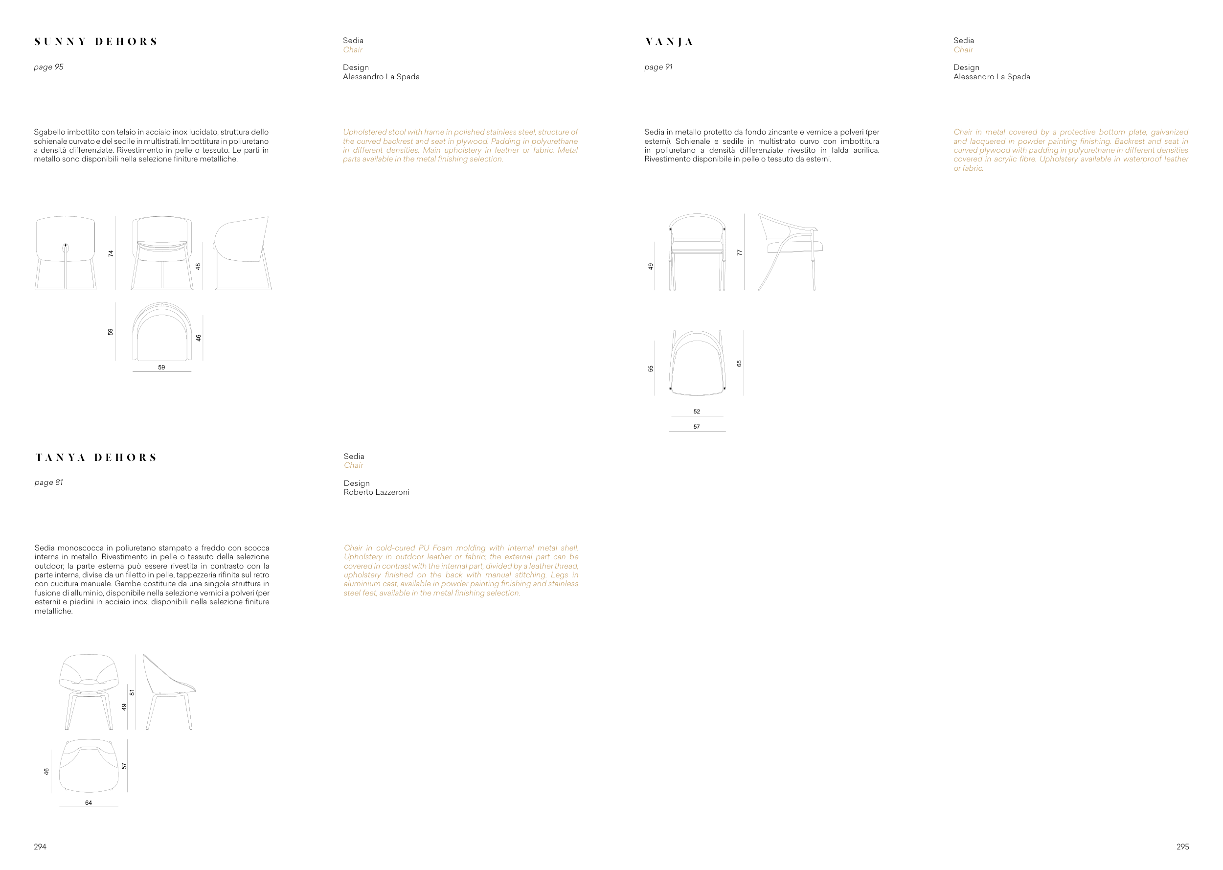 esterni). Schienale e sedile in multistrato curvo con imbottitura