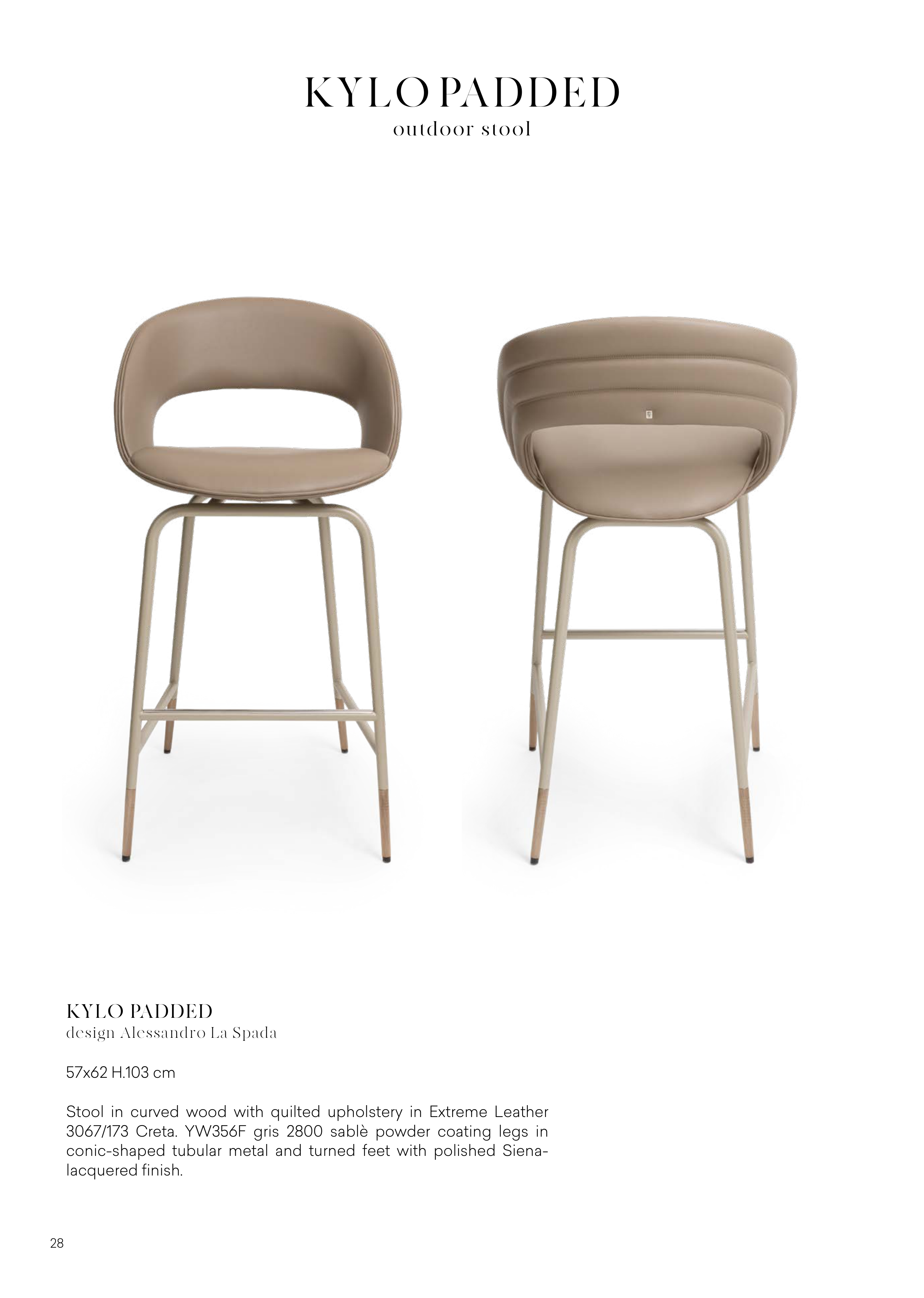 Stool in curved wood with quilted upholstery in Extreme Leather