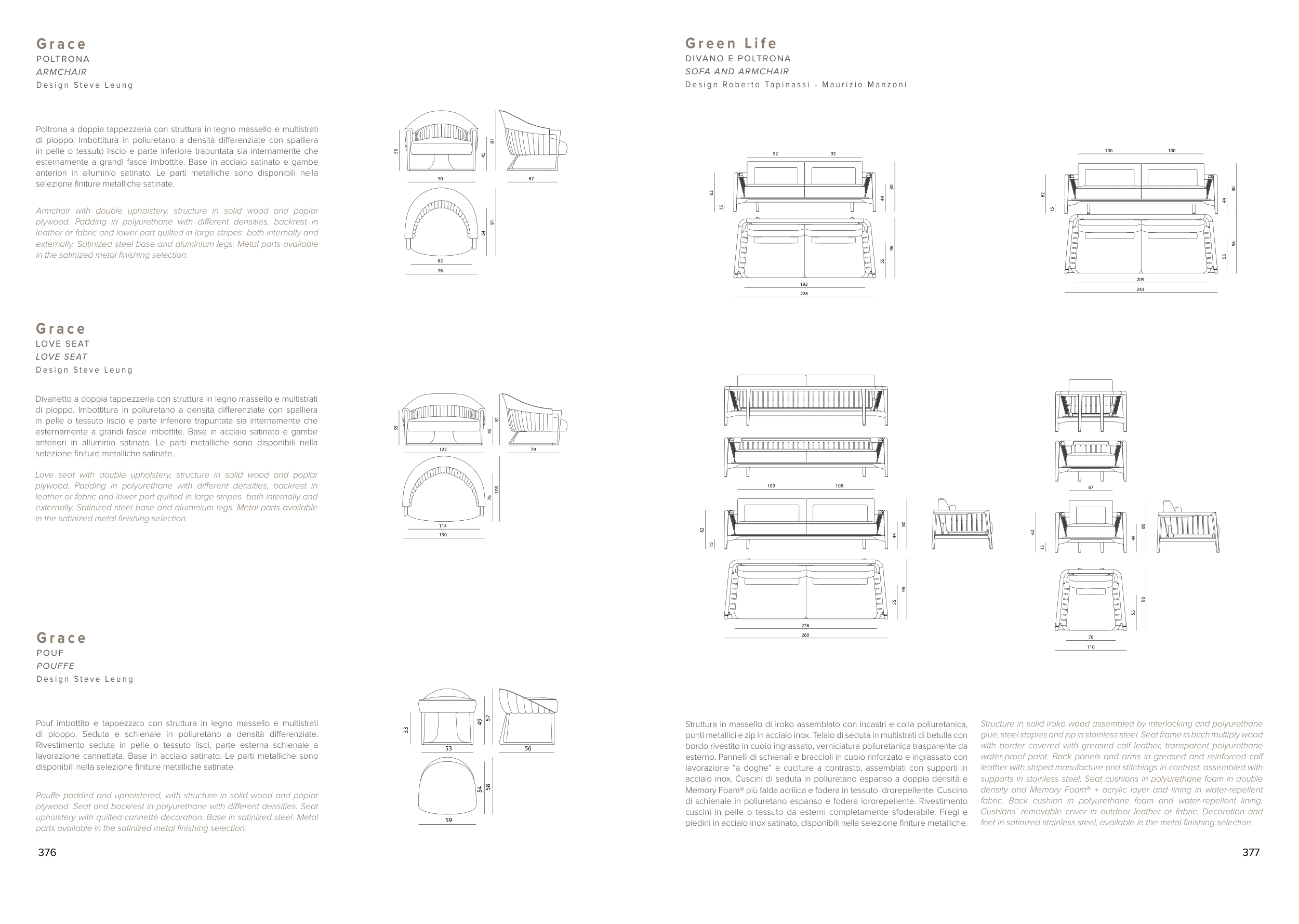 di pioppo. Seduta e schienale in poliuretano a densità differenziate.