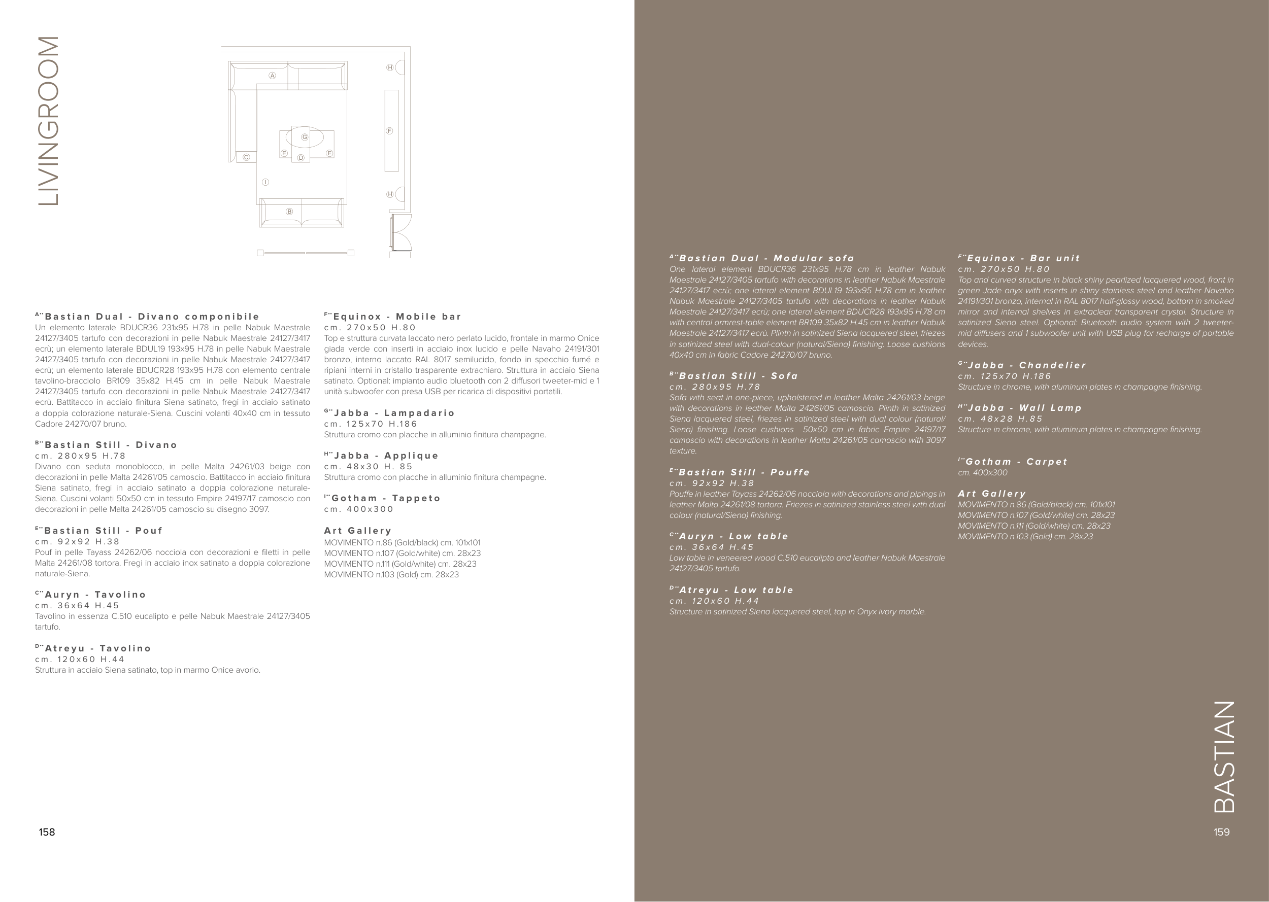 leather Malta 24261/08 tortora. Friezes in satinized stainless steel with dual