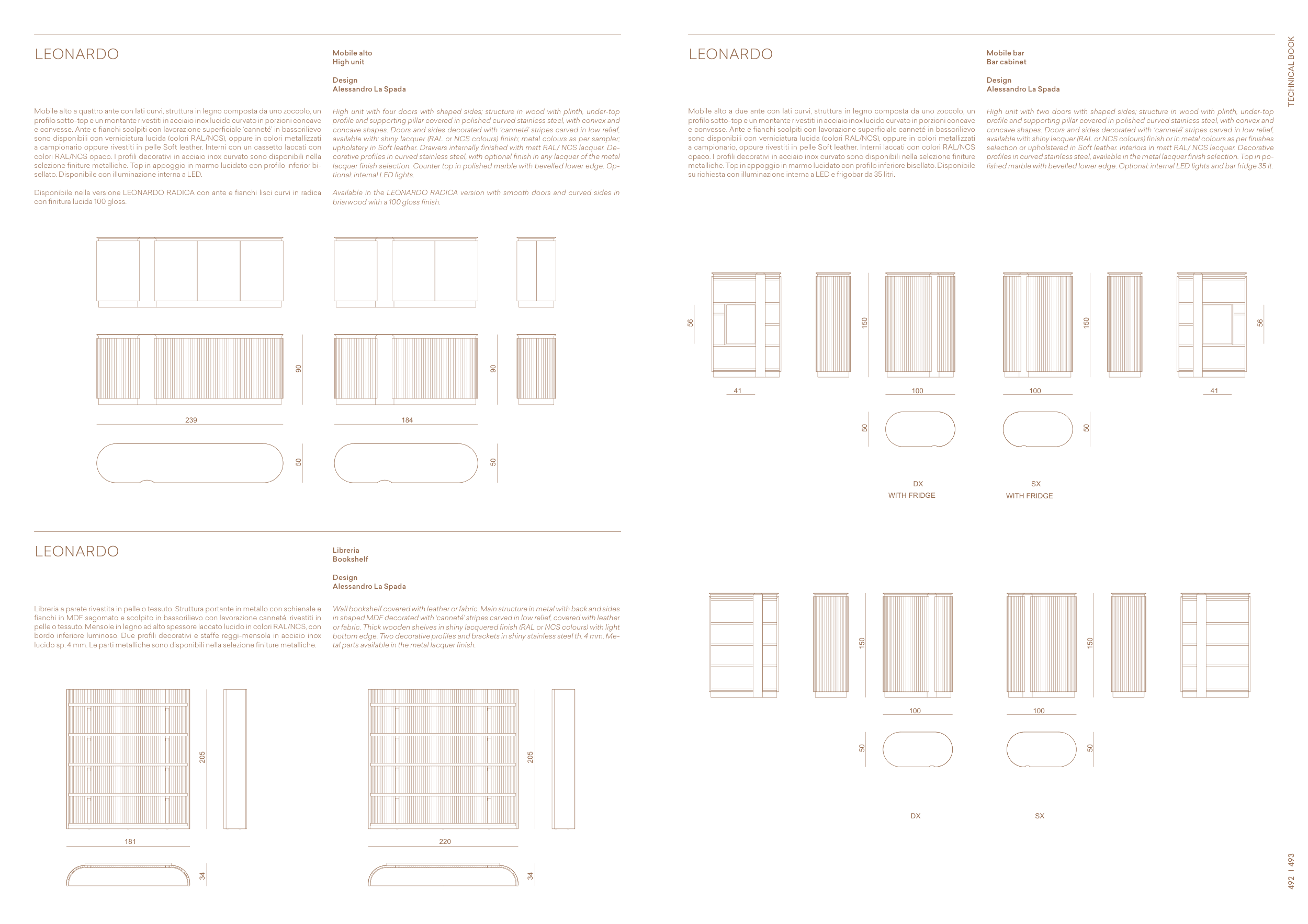 Available in the LEONARDO RADICA version with smooth doors and curved sides in