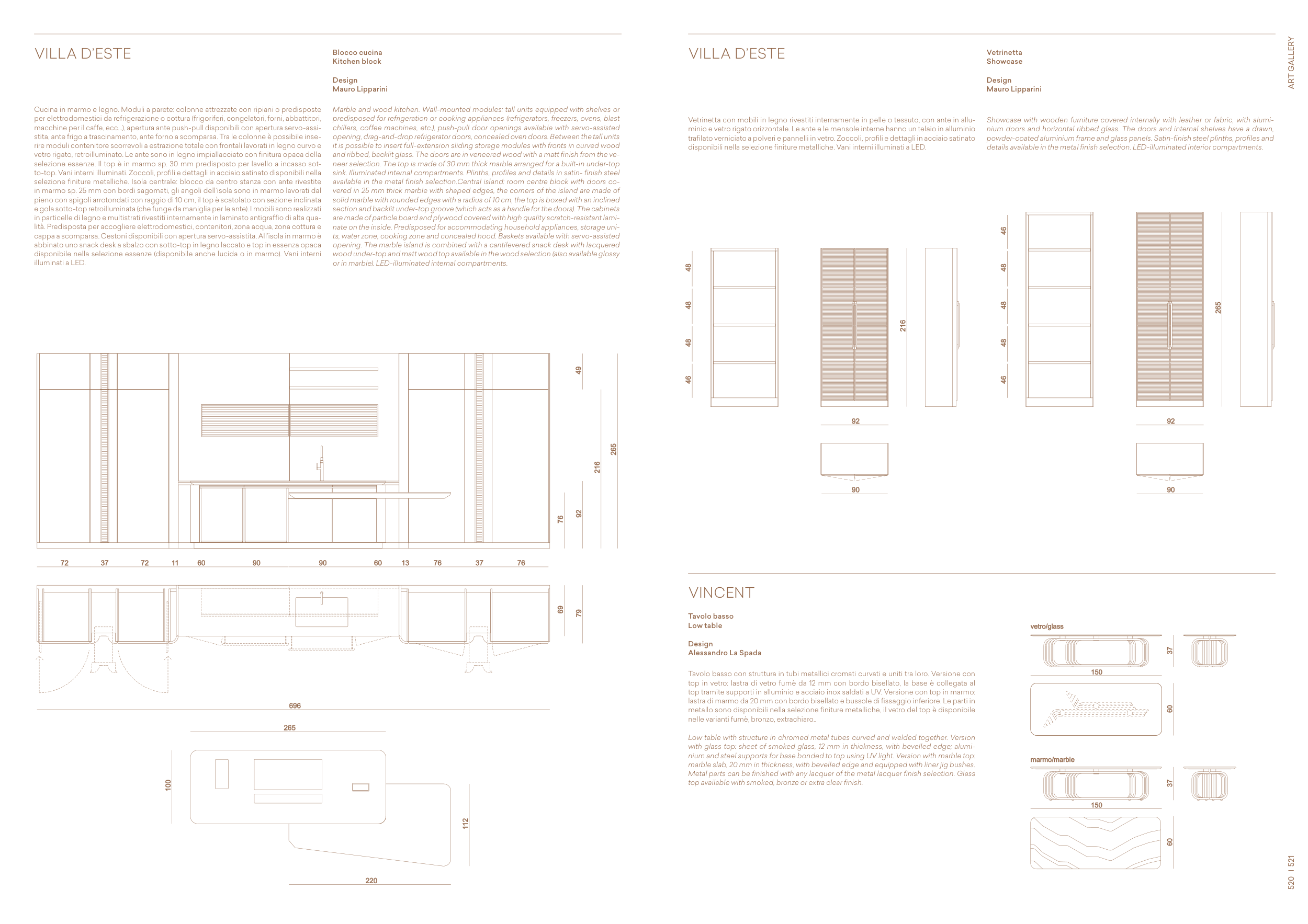 e gola sotto-top retroilluminata (che funge da maniglia per le ante). I mobili sono realizzati