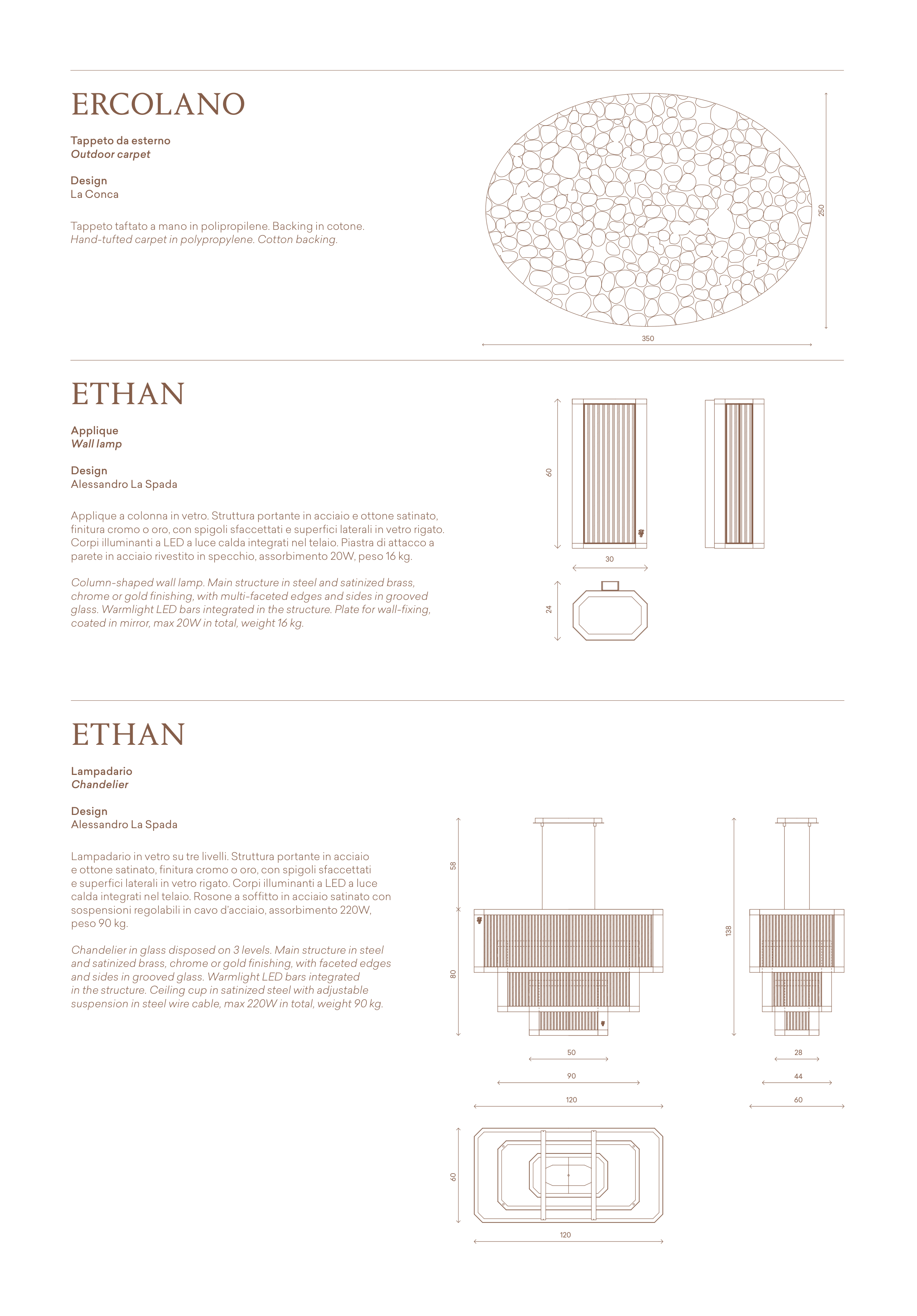 and satinized brass, chrome or gold finishing, with faceted edges