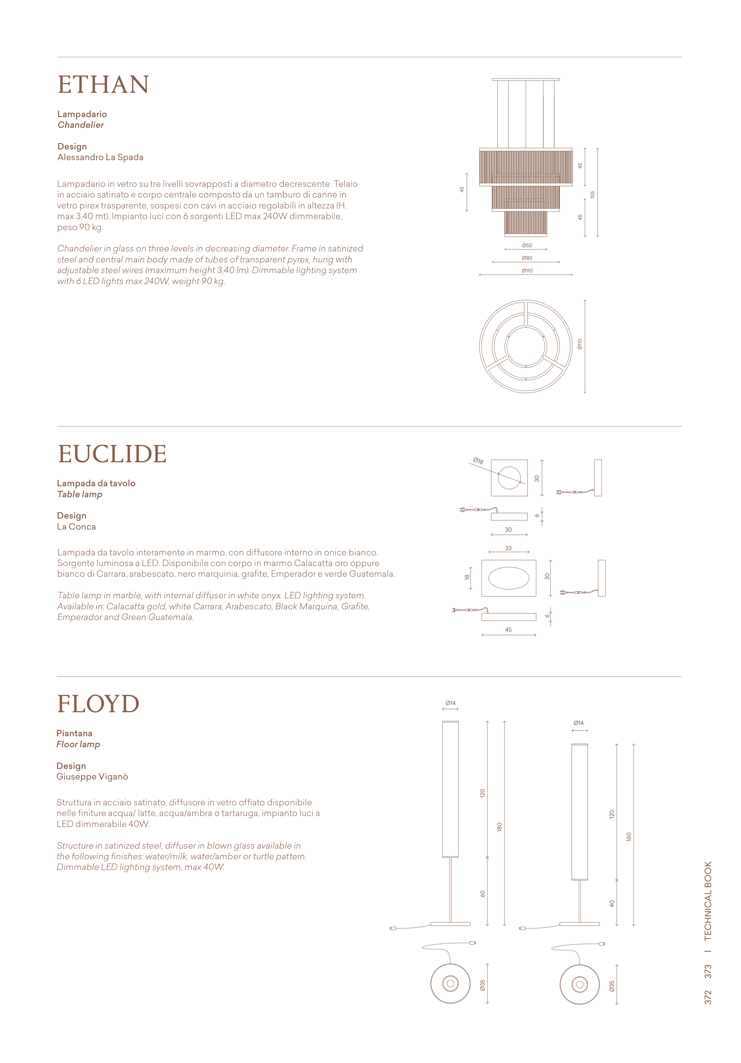 nelle finiture acqua/ latte, acqua/ambra o tartaruga, impianto luci a