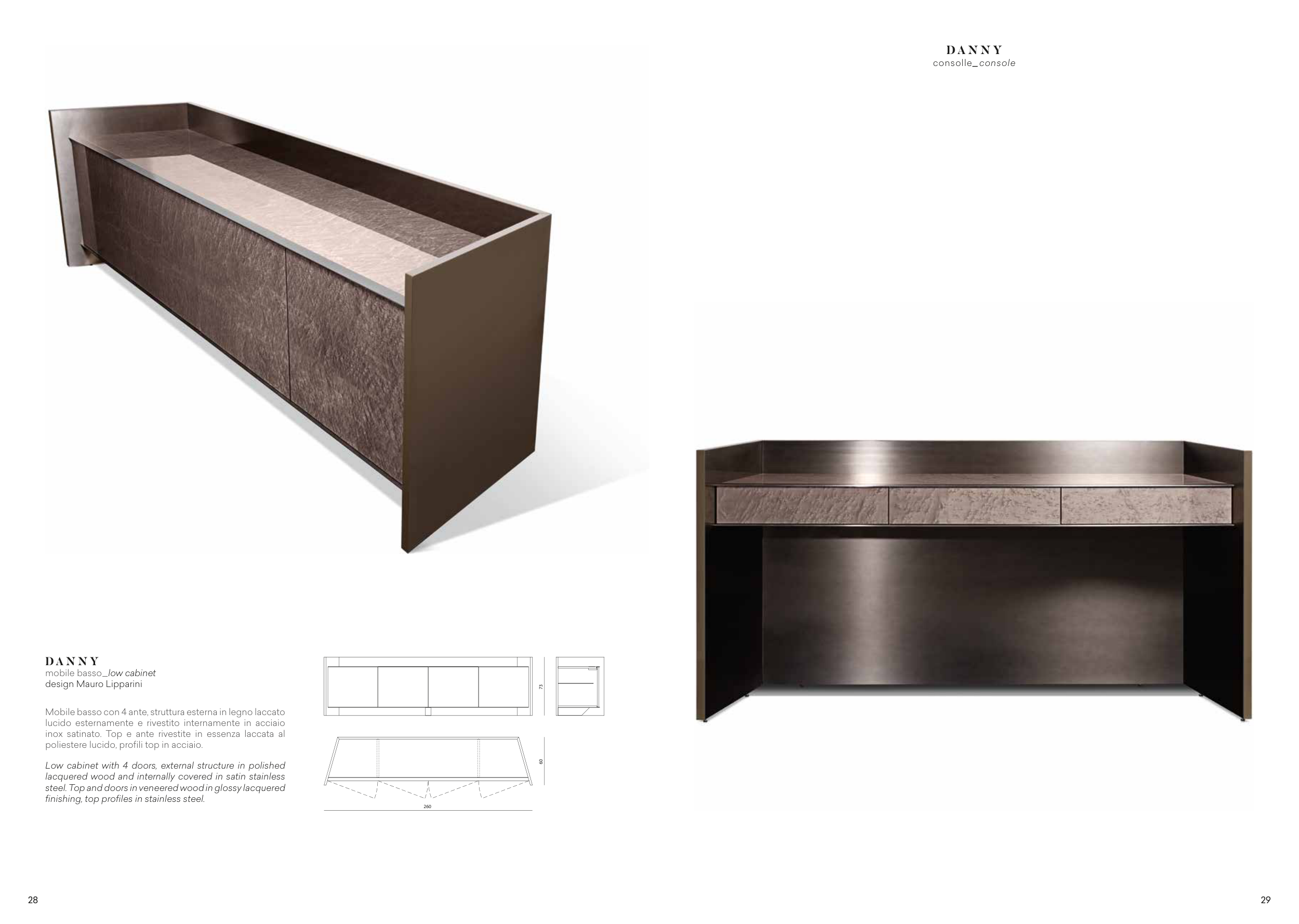 Low cabinet with 4 doors, external structure in polished