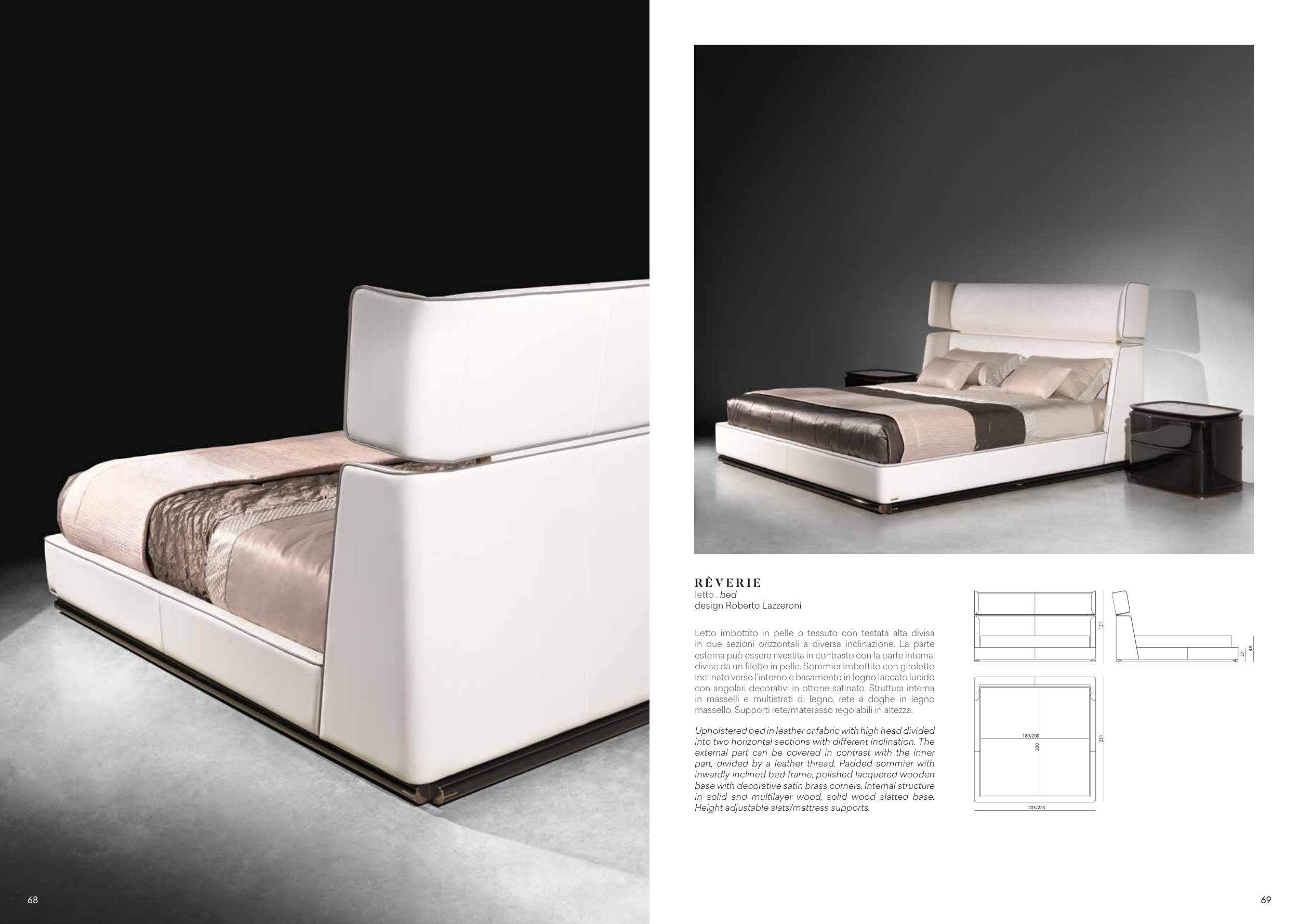 Letto imbottito in pelle o tessuto con testata alta divisa