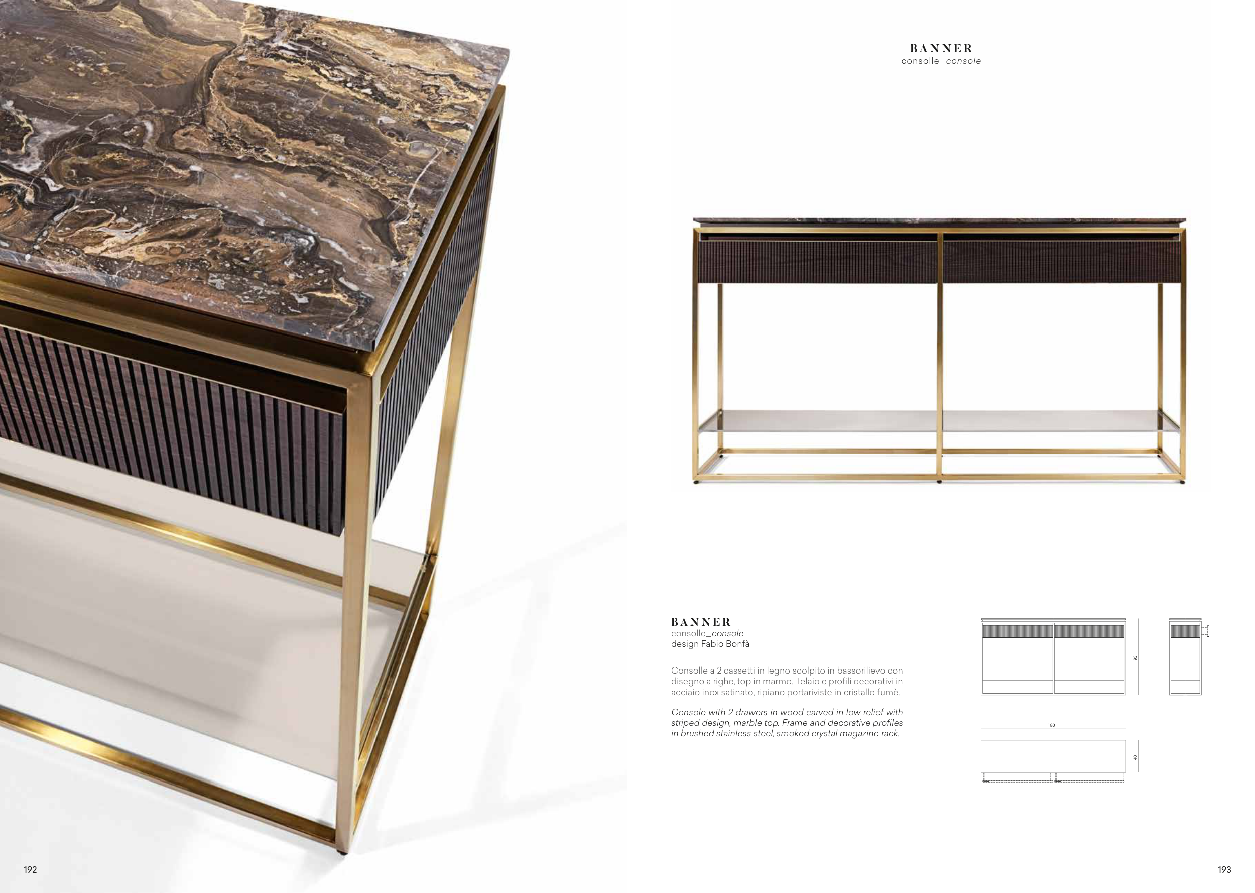 disegno a righe, top in marmo. Telaio e profili decorativi in