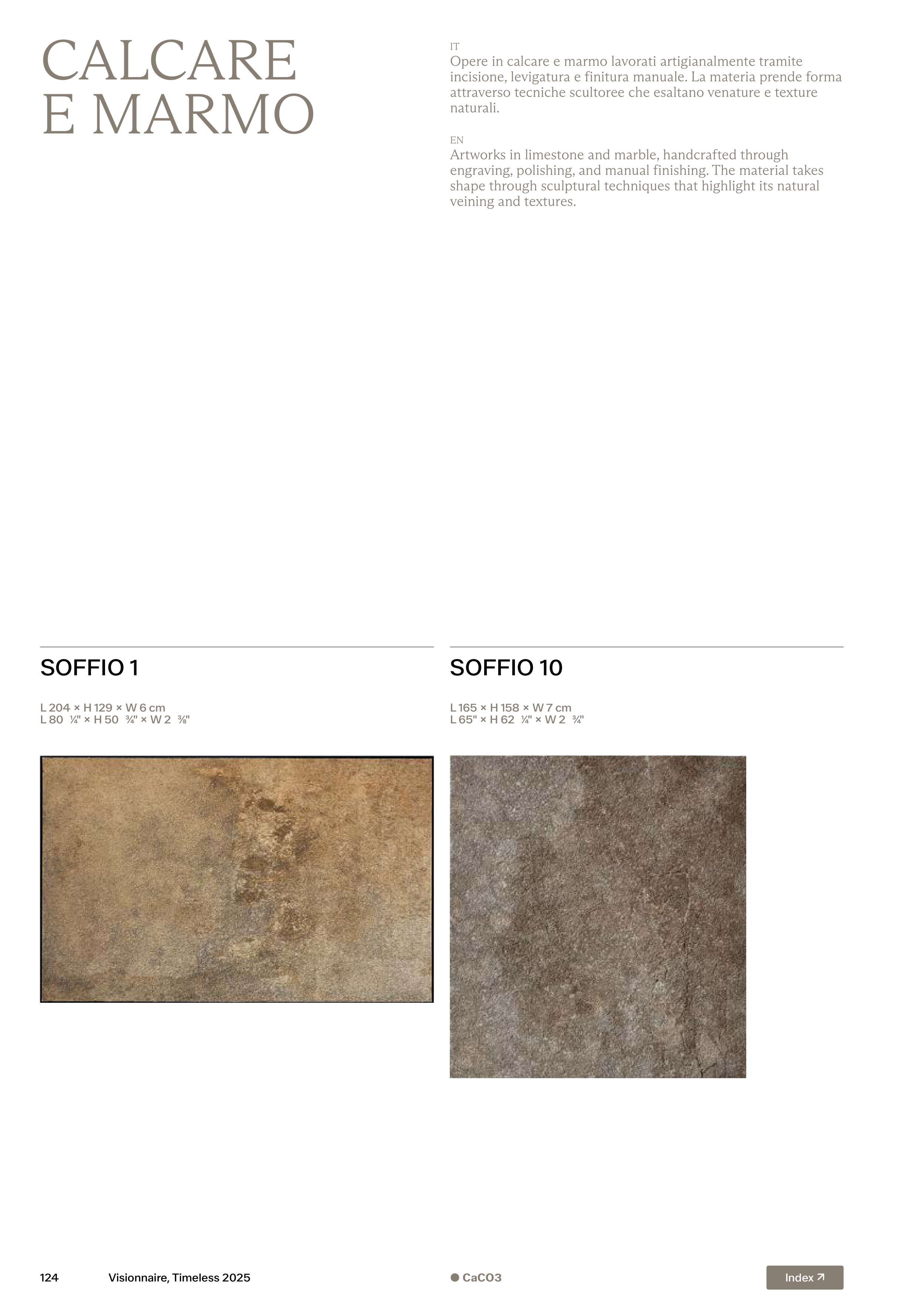 attraverso tecniche scultoree che esaltano venature e texture