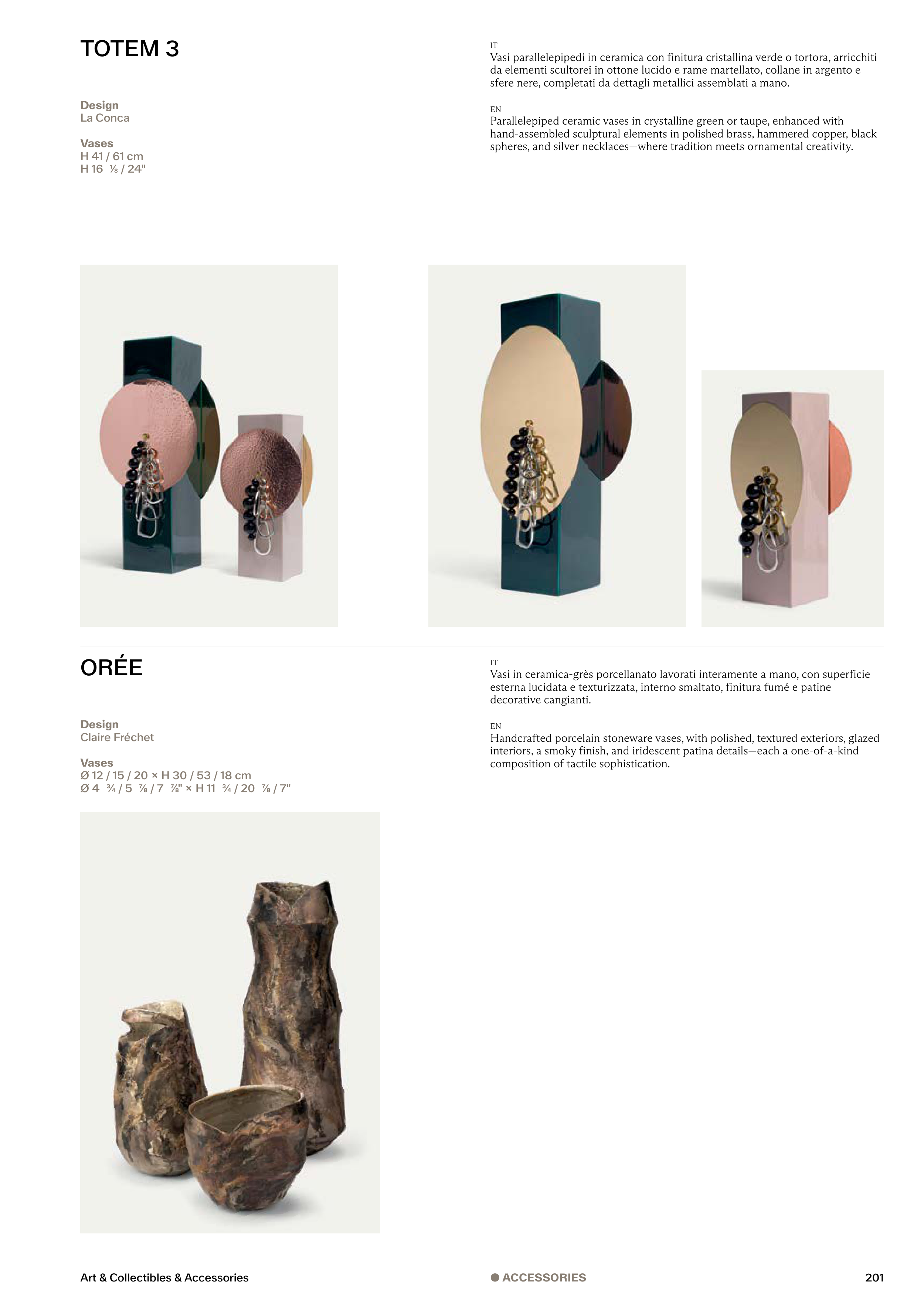 esterna lucidata e texturizzata, interno smaltato, finitura fumé e patine