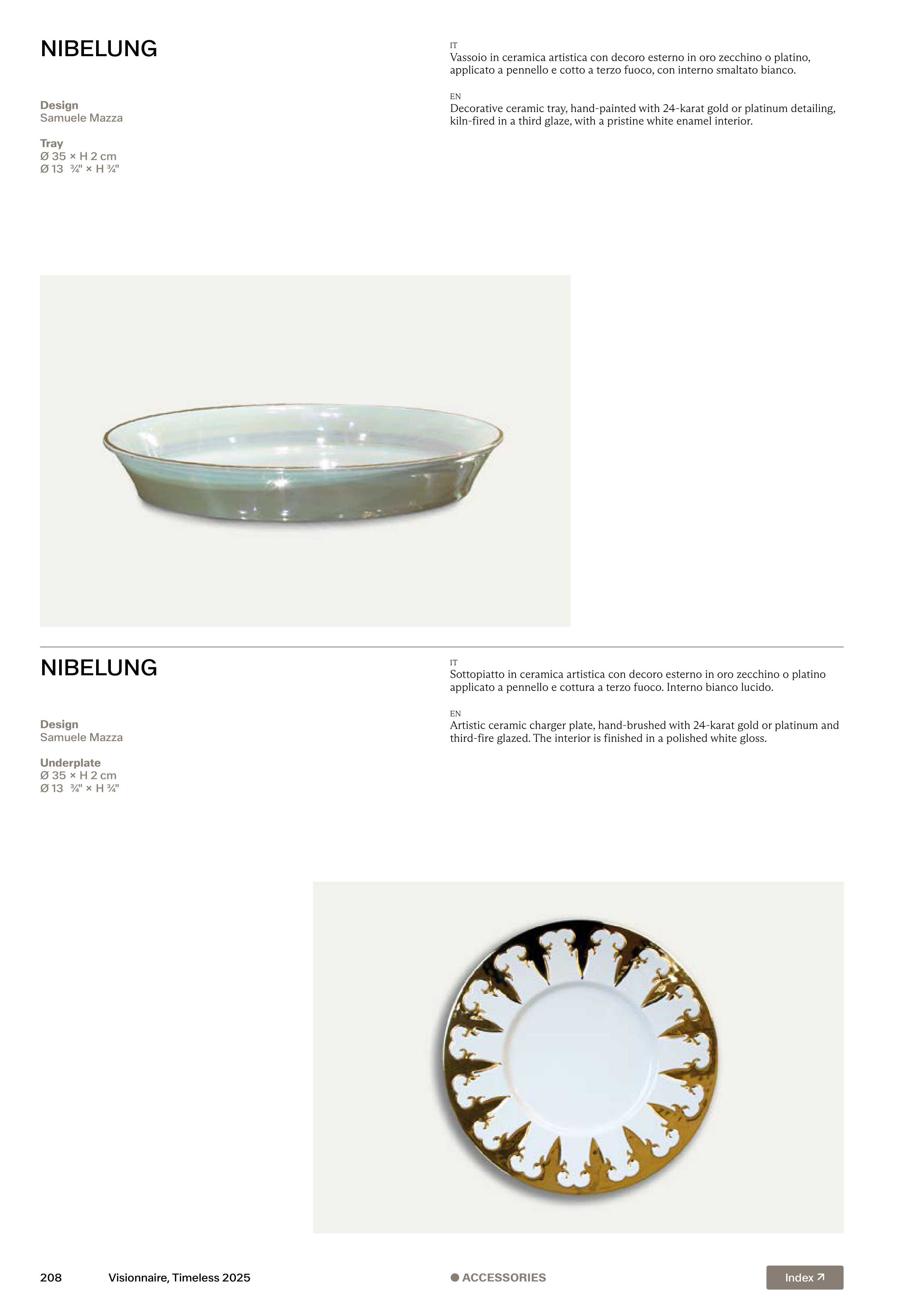 Sottopiatto in ceramica artistica con decoro esterno in oro zecchino o platino