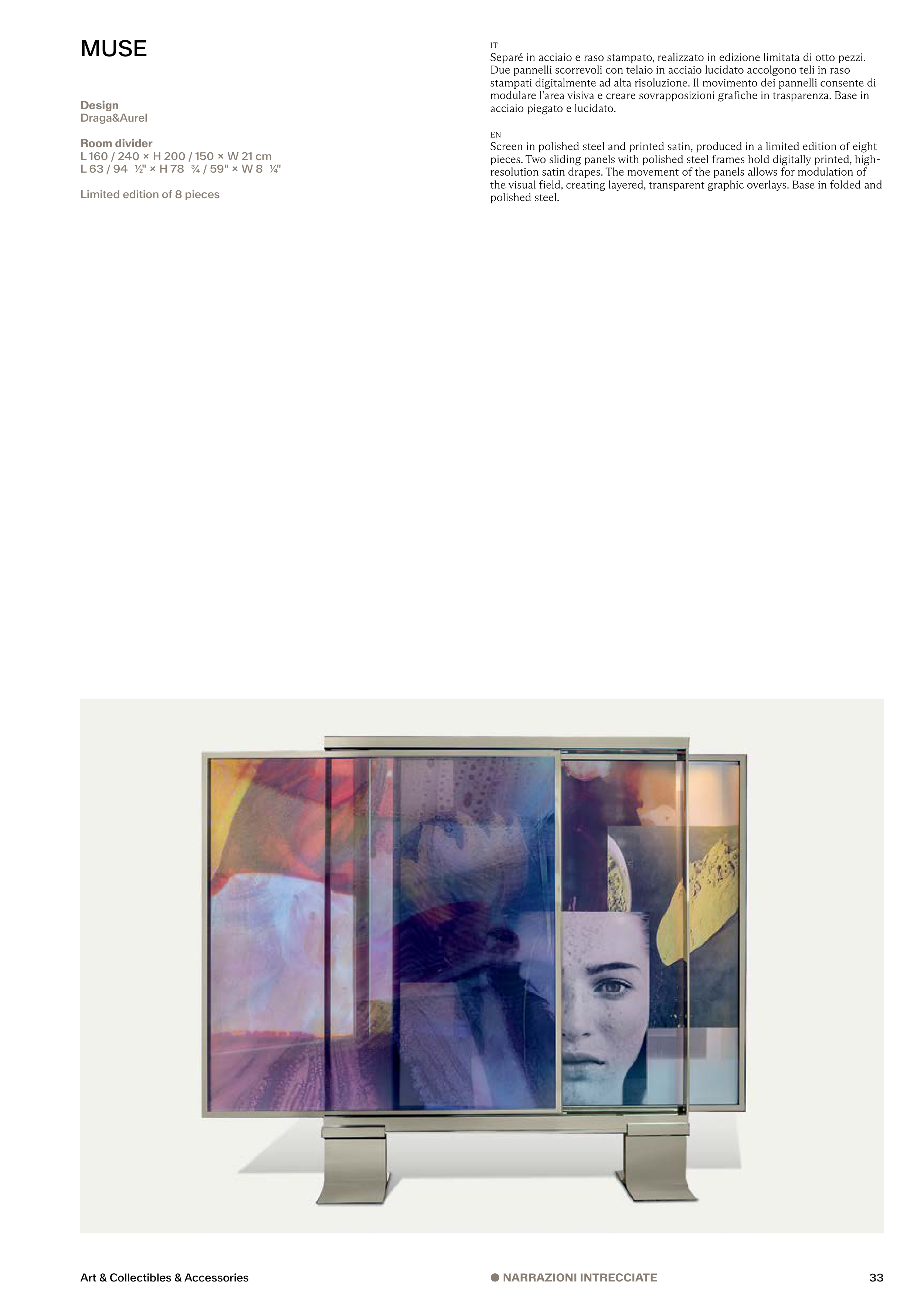pieces. Two sliding panels with polished steel frames hold digitally printed, high-