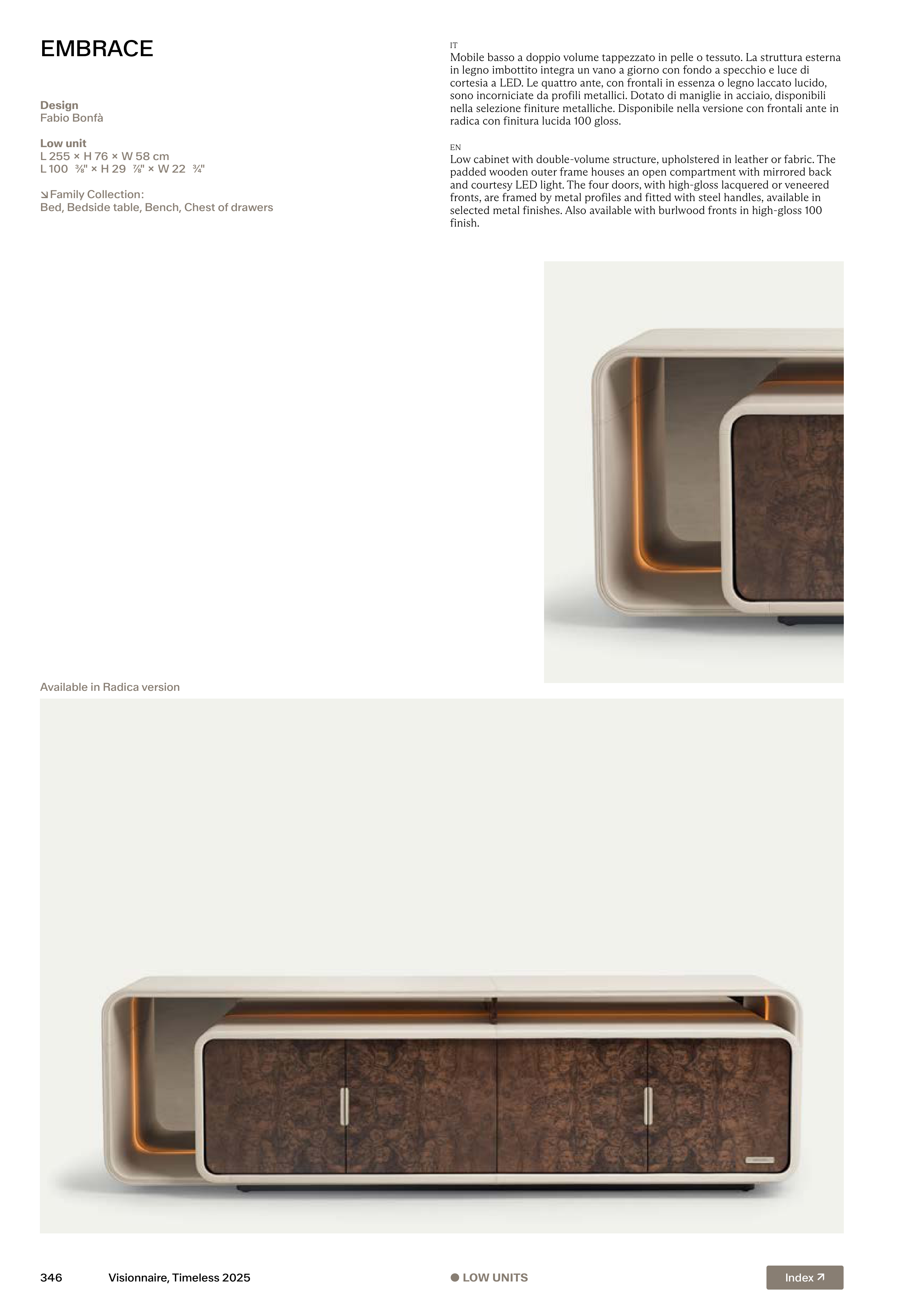 and courtesy LED light. The four doors, with high-gloss lacquered or veneered