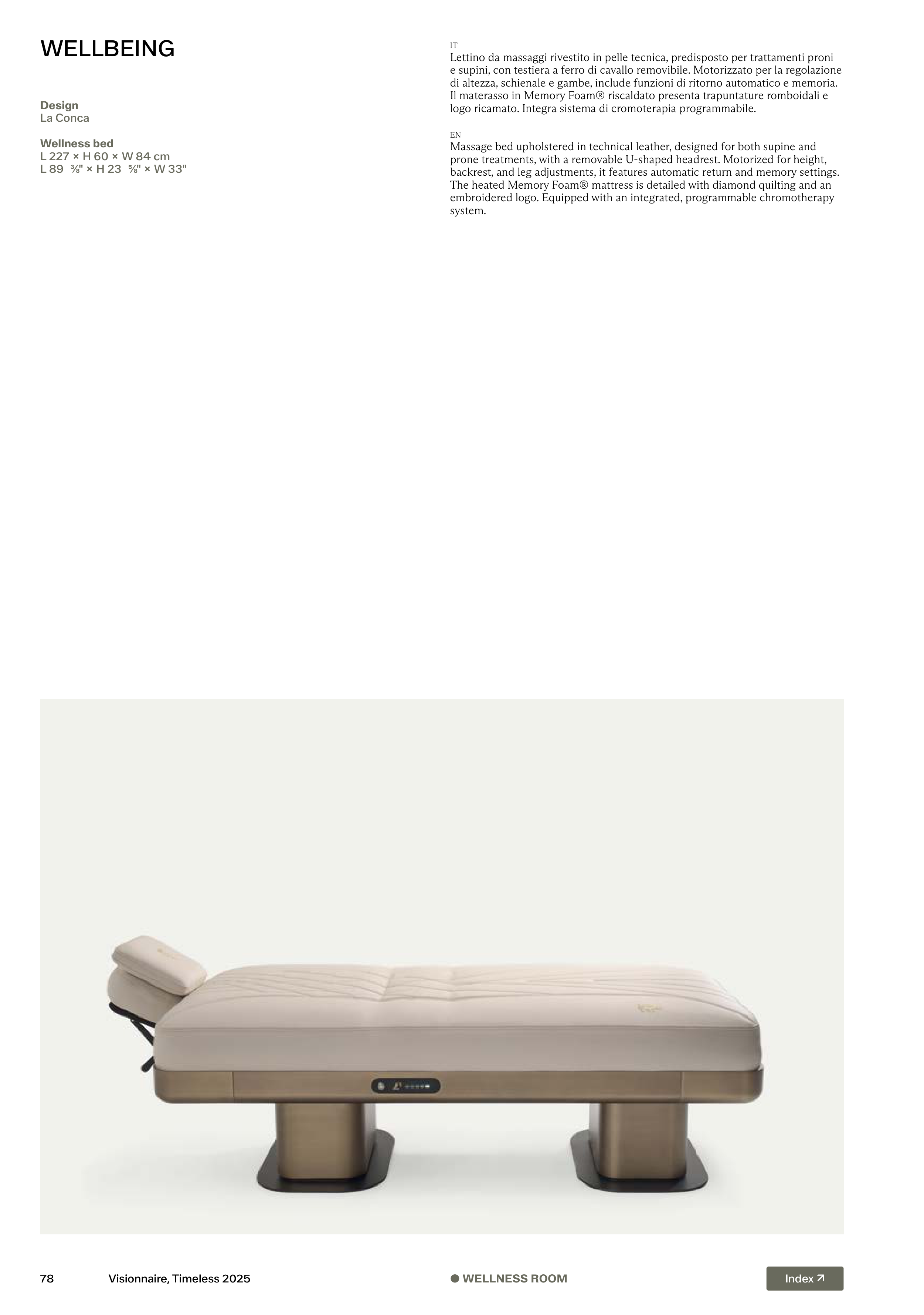 e supini, con testiera a ferro di cavallo removibile. Motorizzato per la regolazione