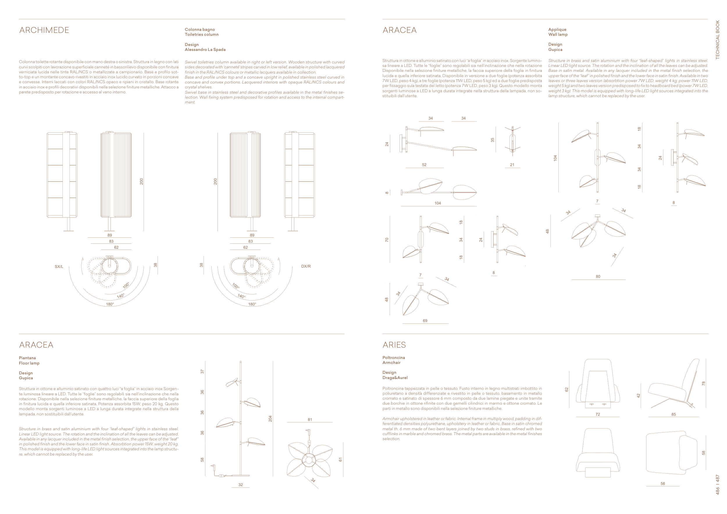 weight 5 kg) and two leaves version predisposed to fix to headboard bed (power 7W LED,