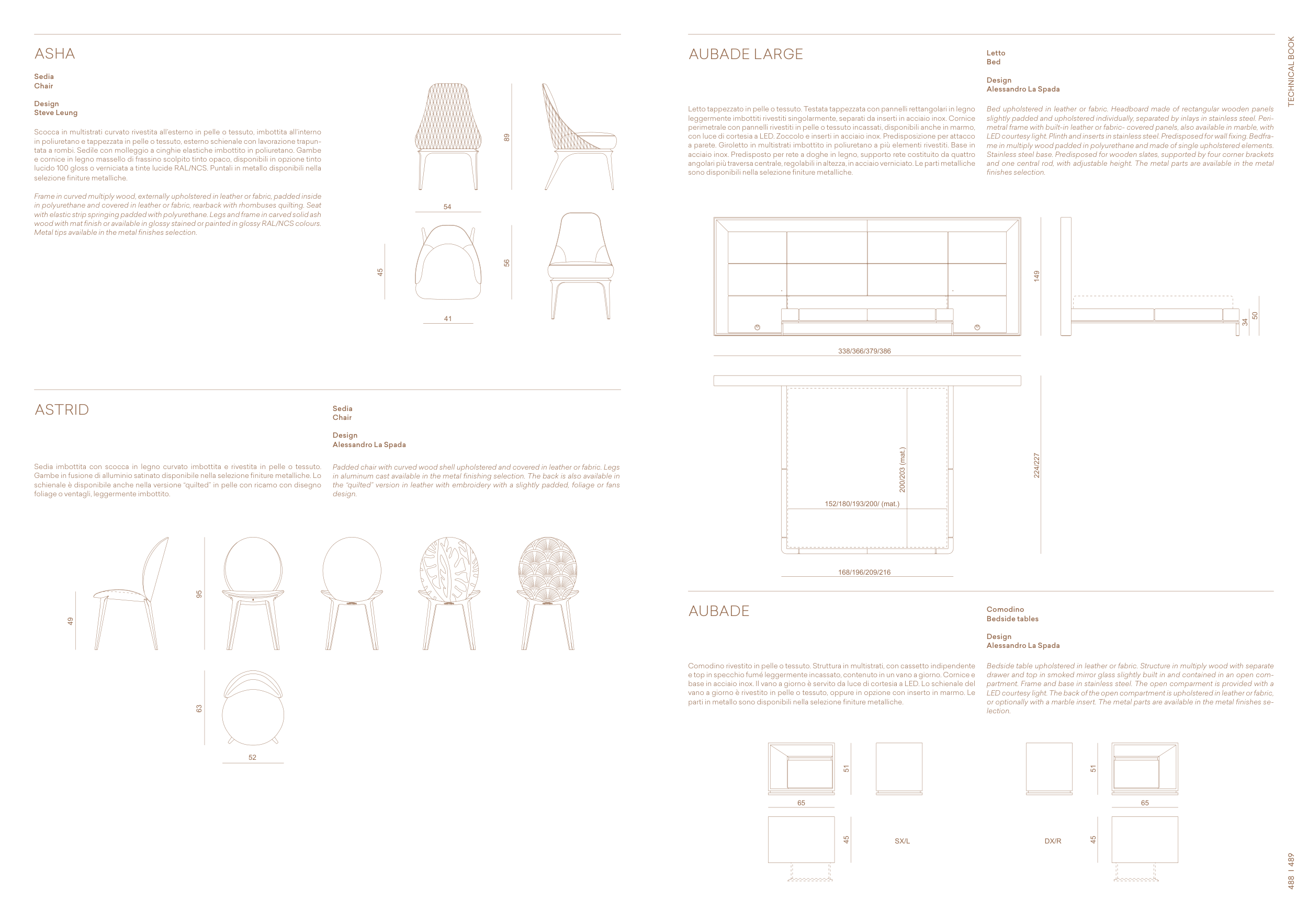 slightly padded and upholstered individually, separated by inlays in stainless steel. Peri-