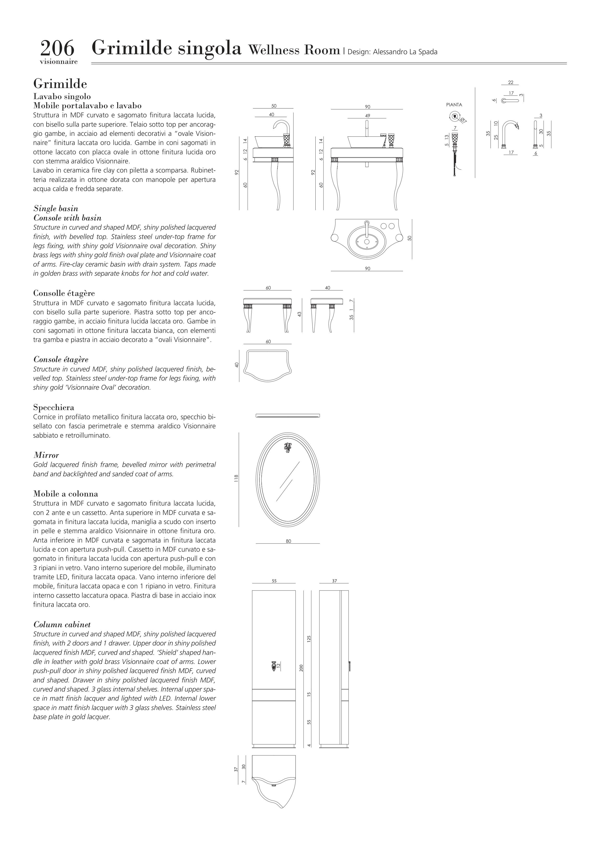 naire” finitura laccata oro lucida. Gambe in coni sagomati in