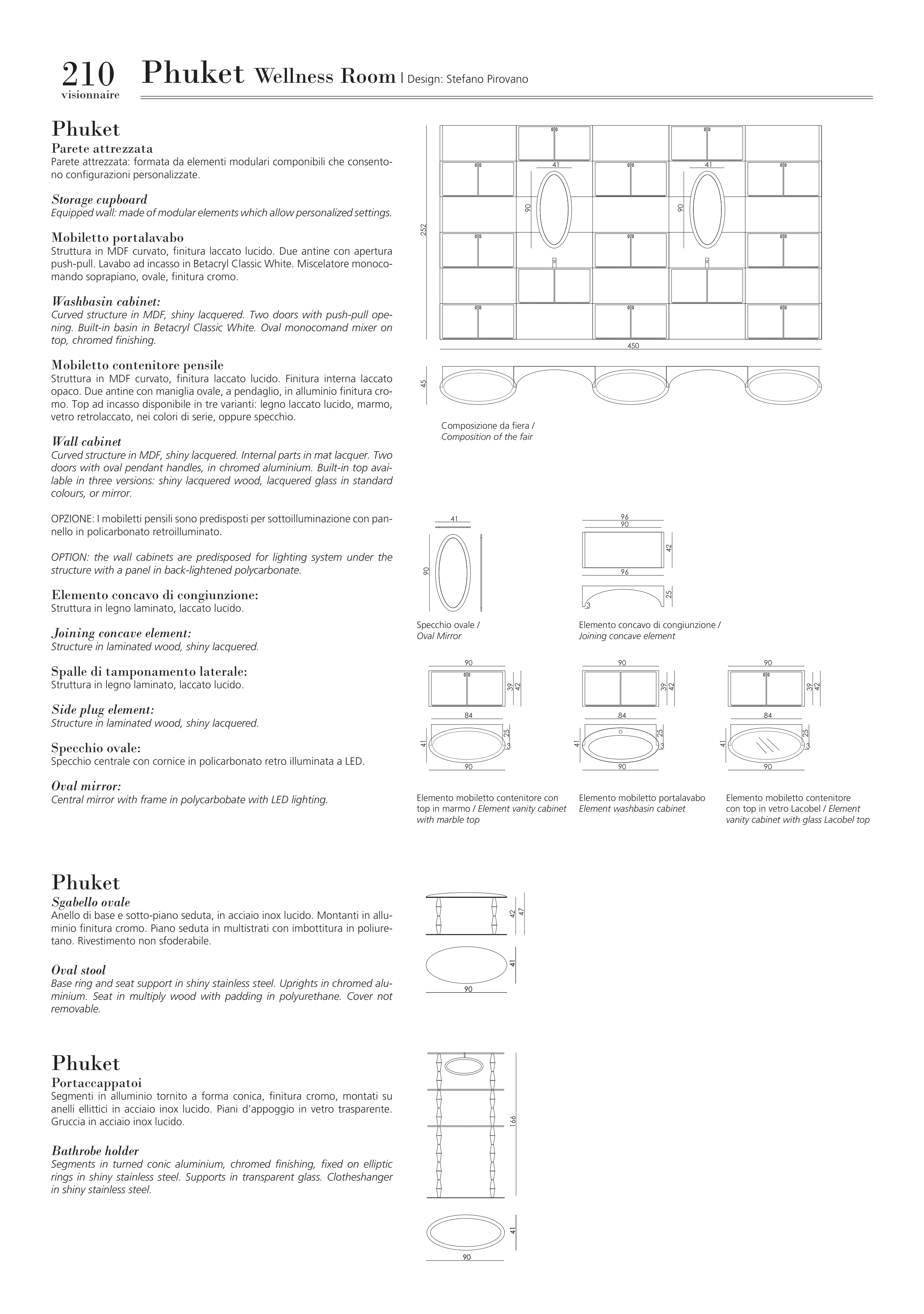 doors with oval pendant handles, in chromed aluminium. Built-in top avai-