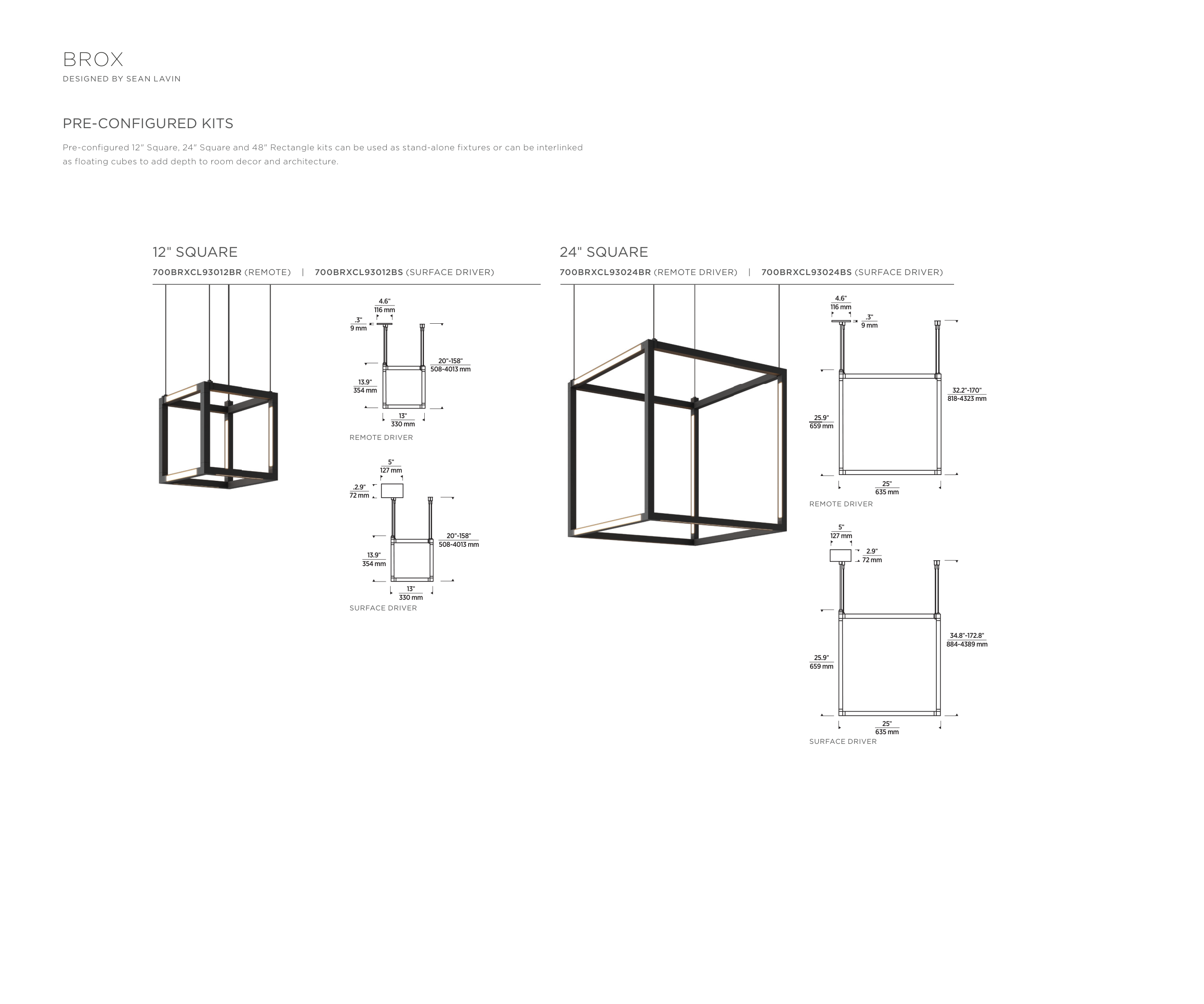 Pre-configured 12" Square, 24" Square and 48" Rectangle kits can be used as stand-alone fixtures or can be interlinked