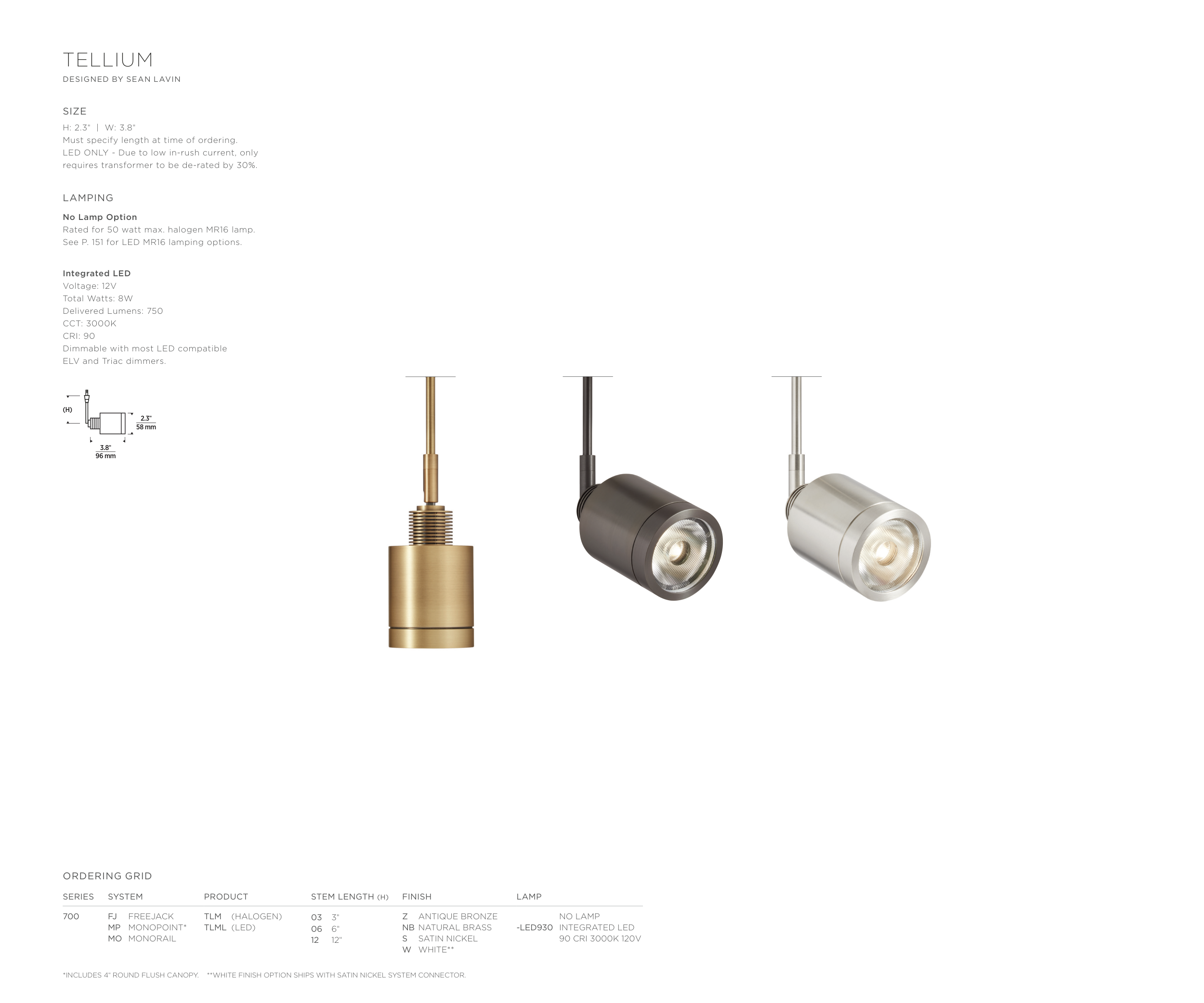 *INCLUDES 4" ROUND FLUSH CANOPY. **WHITE FINISH OPTION SHIPS WITH SATIN NICKEL SYSTEM CONNECTOR.