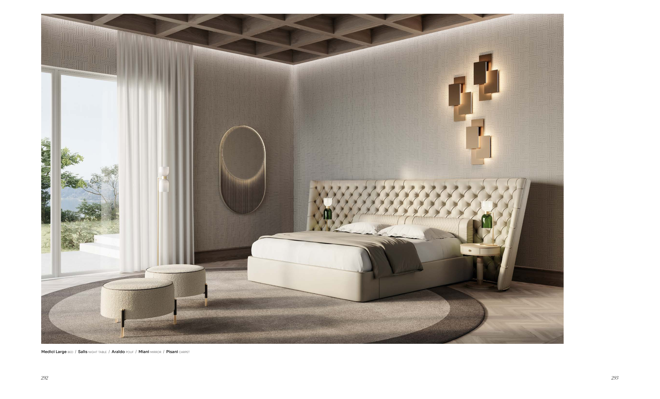 Medici Large bed / Salis night table / Araldo pouf / Miani mirror / Pisani carpet