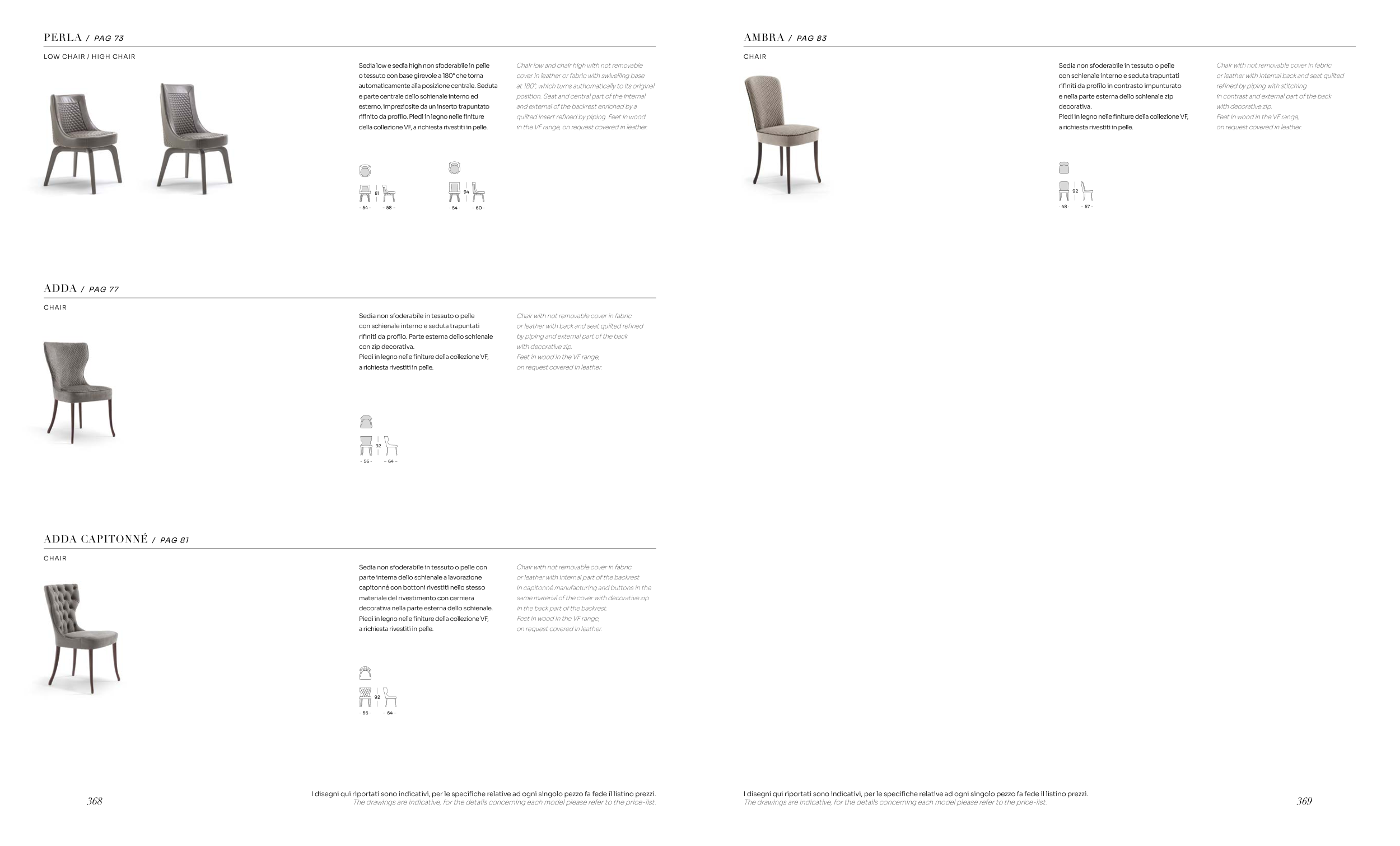 della collezione VF, a richiesta rivestiti in pelle.