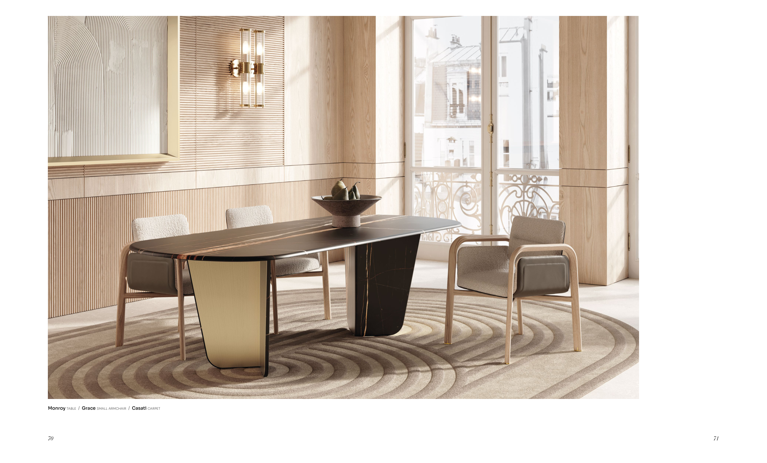 Monroy table / Grace small armchair / Casati carpet