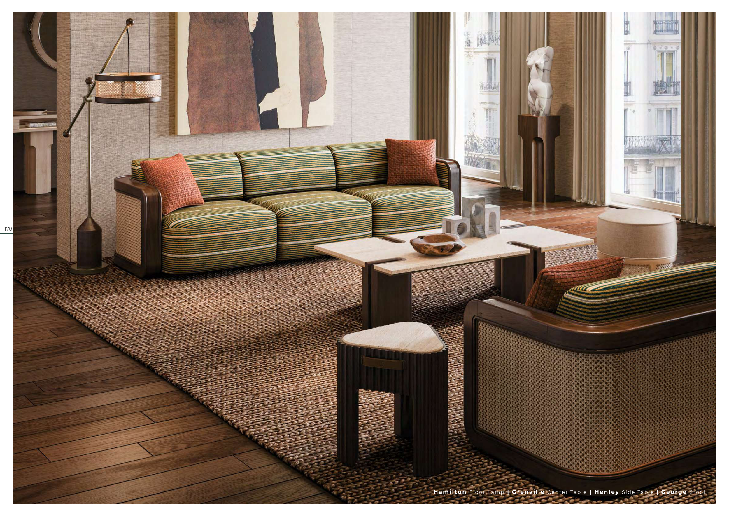 H a m i l ton Fl o o r L a m p | Grenvi l l e Ce n te r Ta b l e | H en l ey S id e Ta b l e | Ge orge Stool