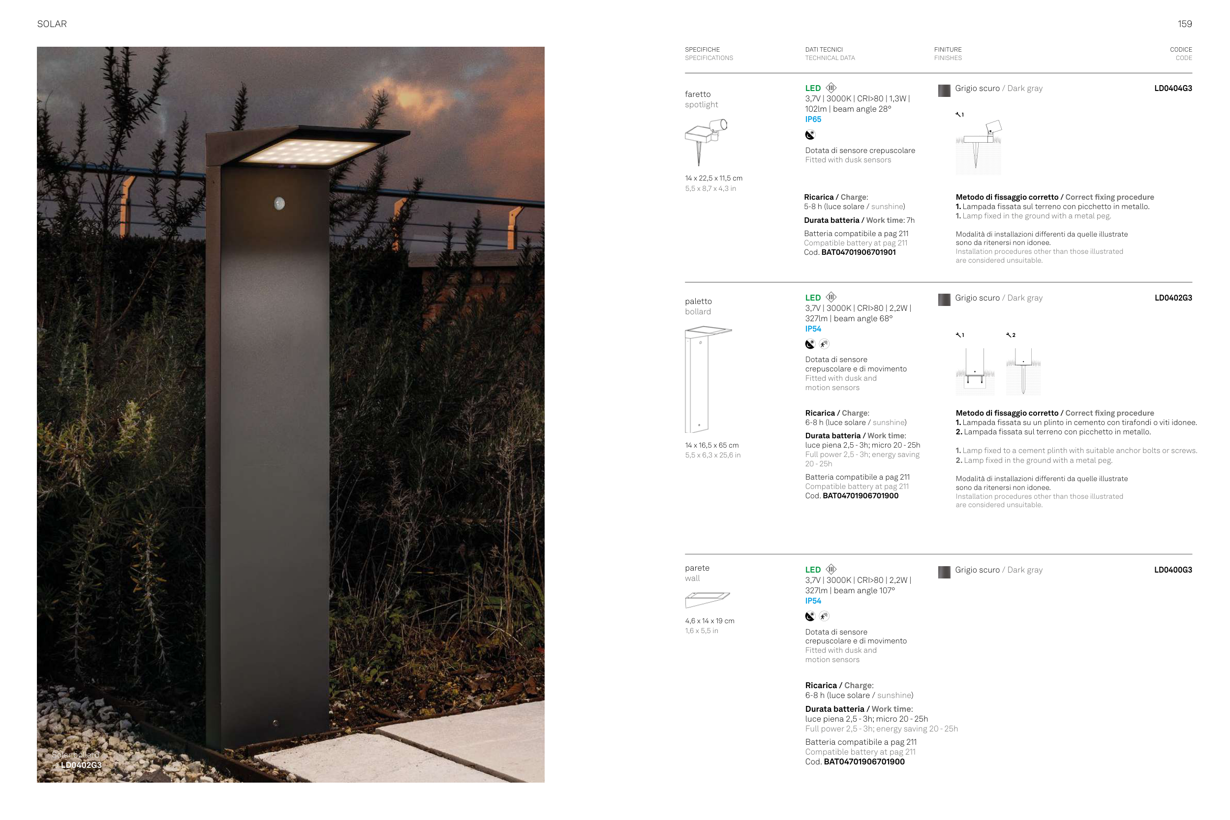 1. Lampada fissata sul terreno con picchetto in metallo.