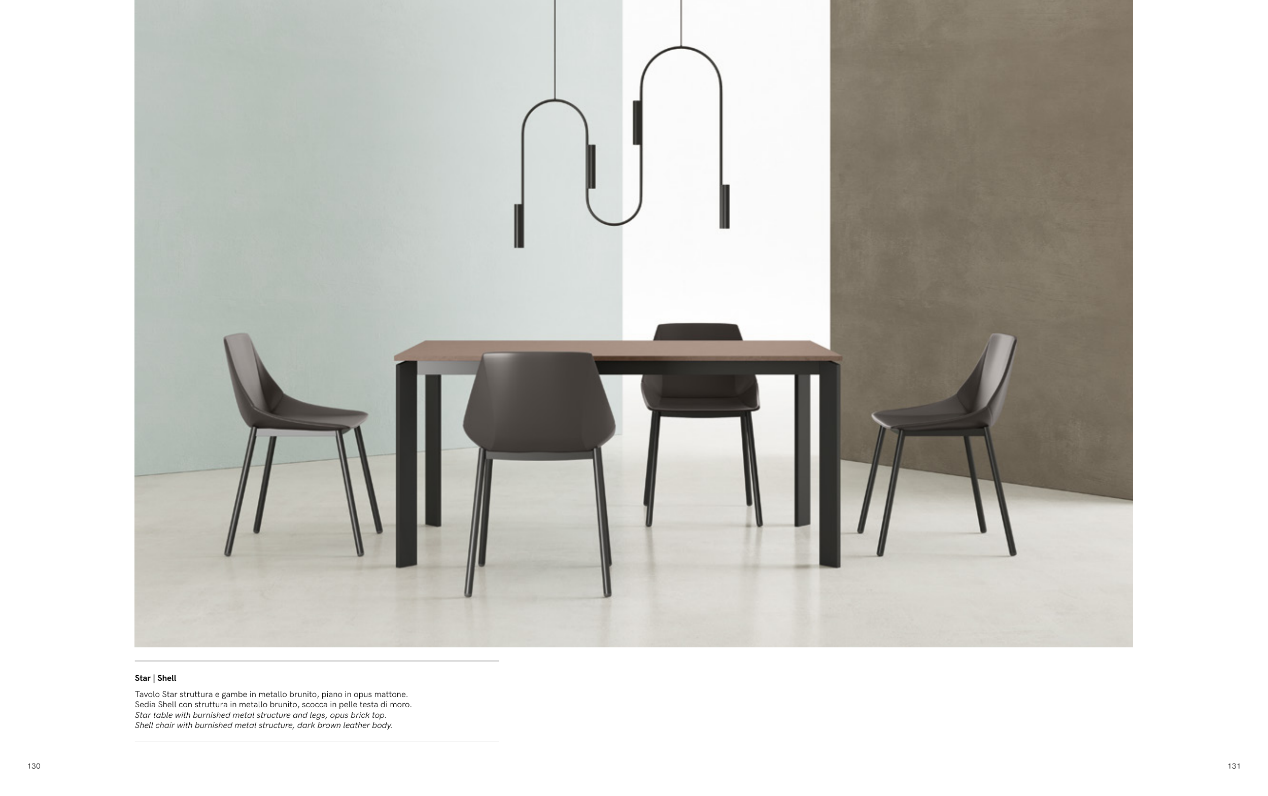 Sedia Shell con struttura in metallo brunito, scocca in pelle testa di moro.