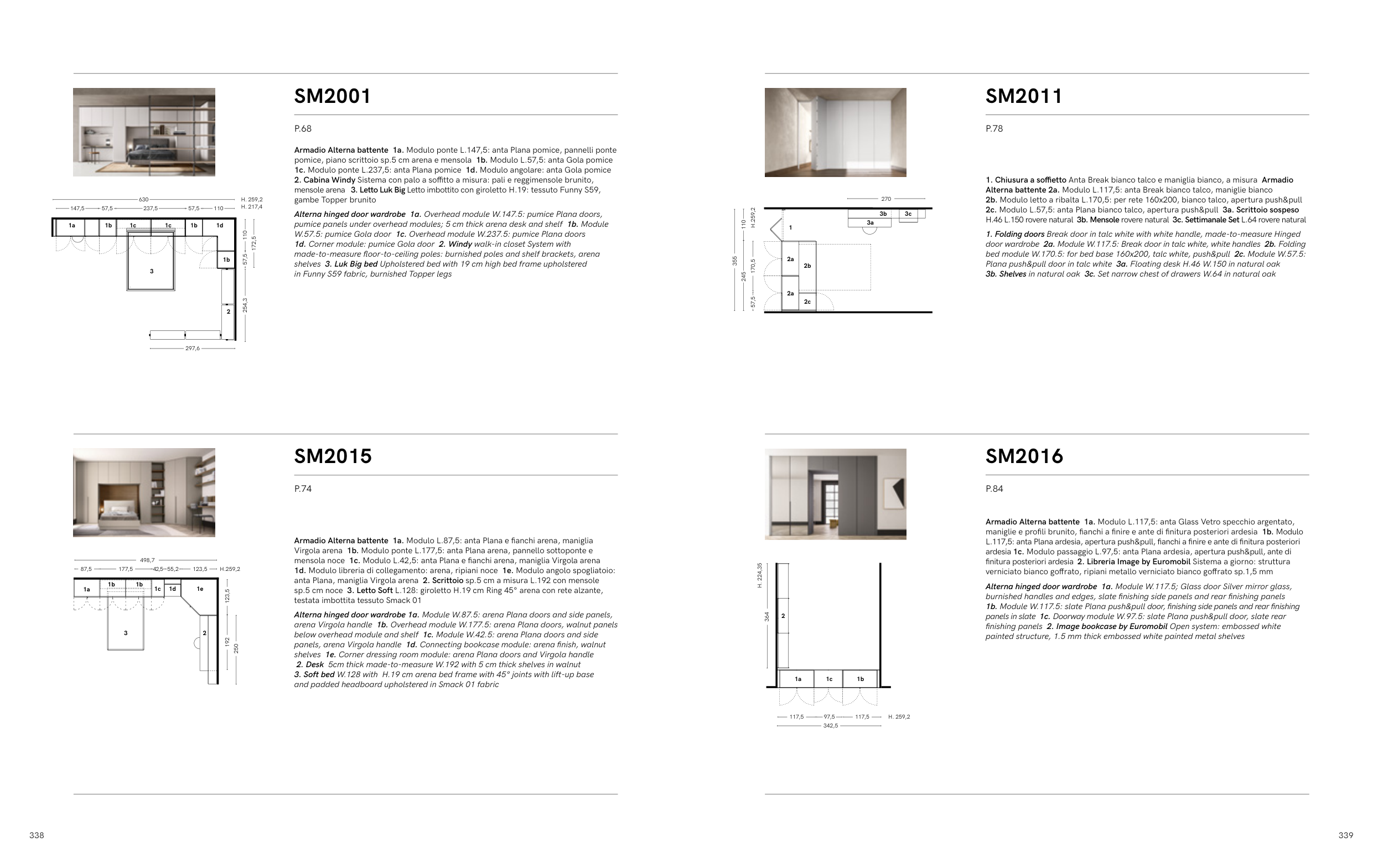 1c. Modulo ponte L.237,5: anta Plana pomice 1d. Modulo angolare: anta Gola pomice
