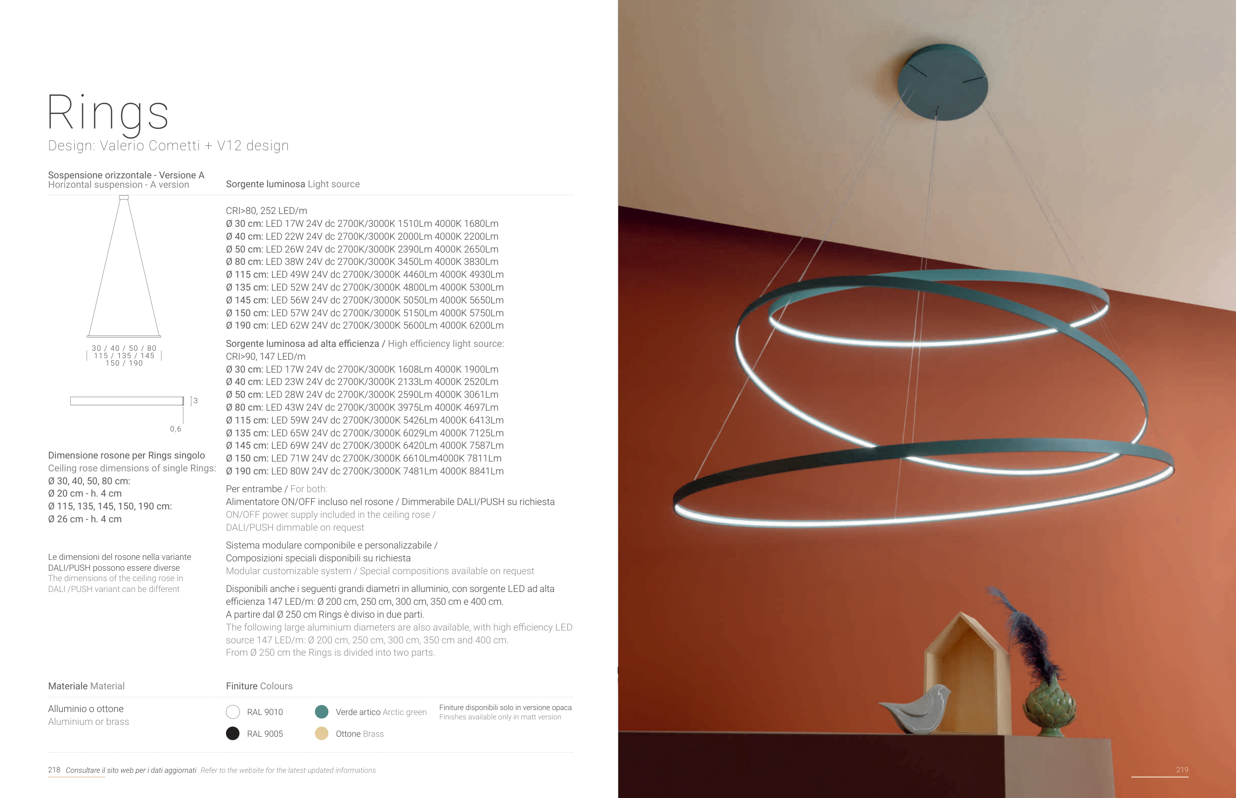 source 147 LED/m: Ø 200 cm, 250 cm, 300 cm, 350 cm and 400 cm.