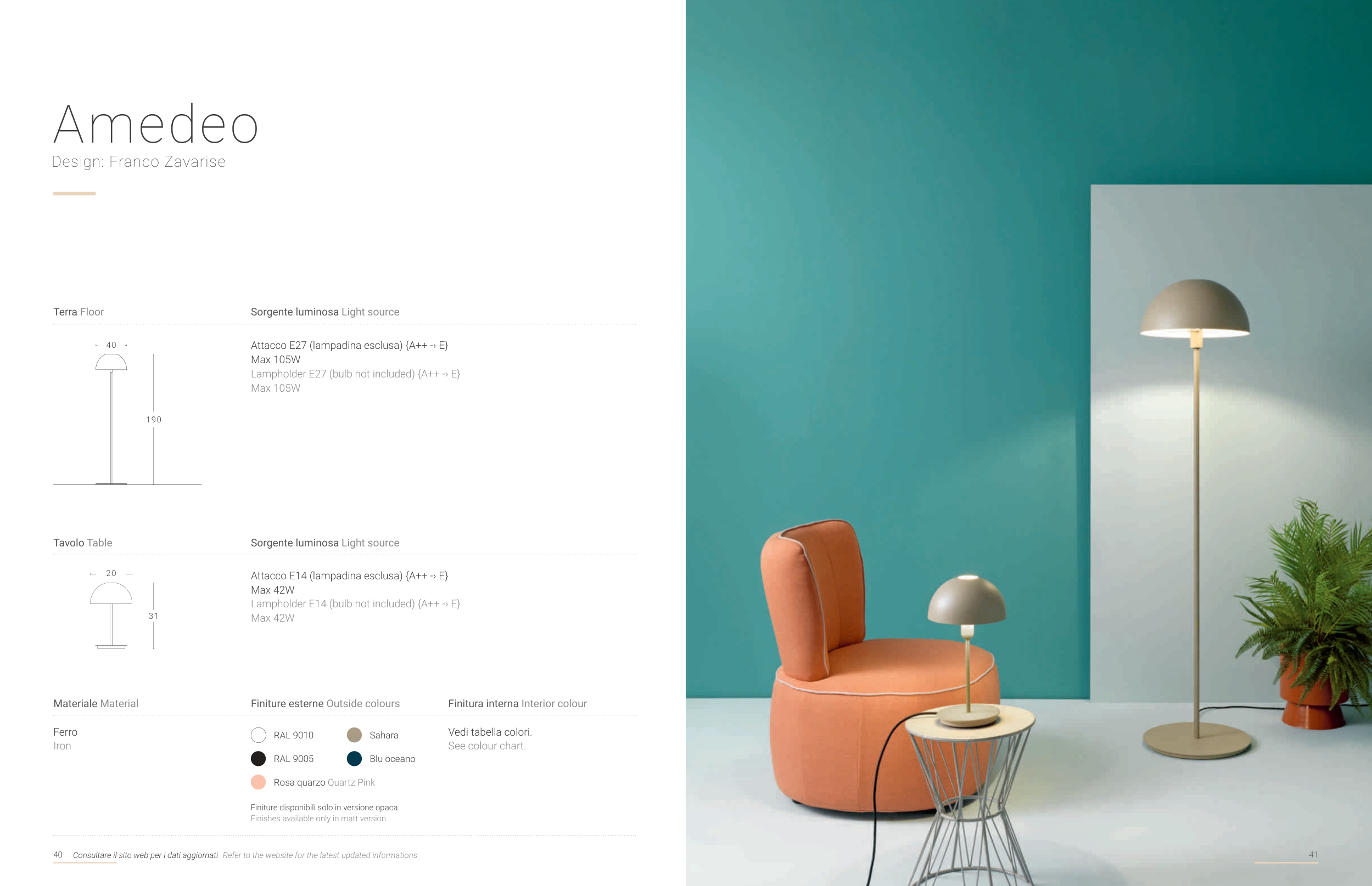 Finishes available only in matt version