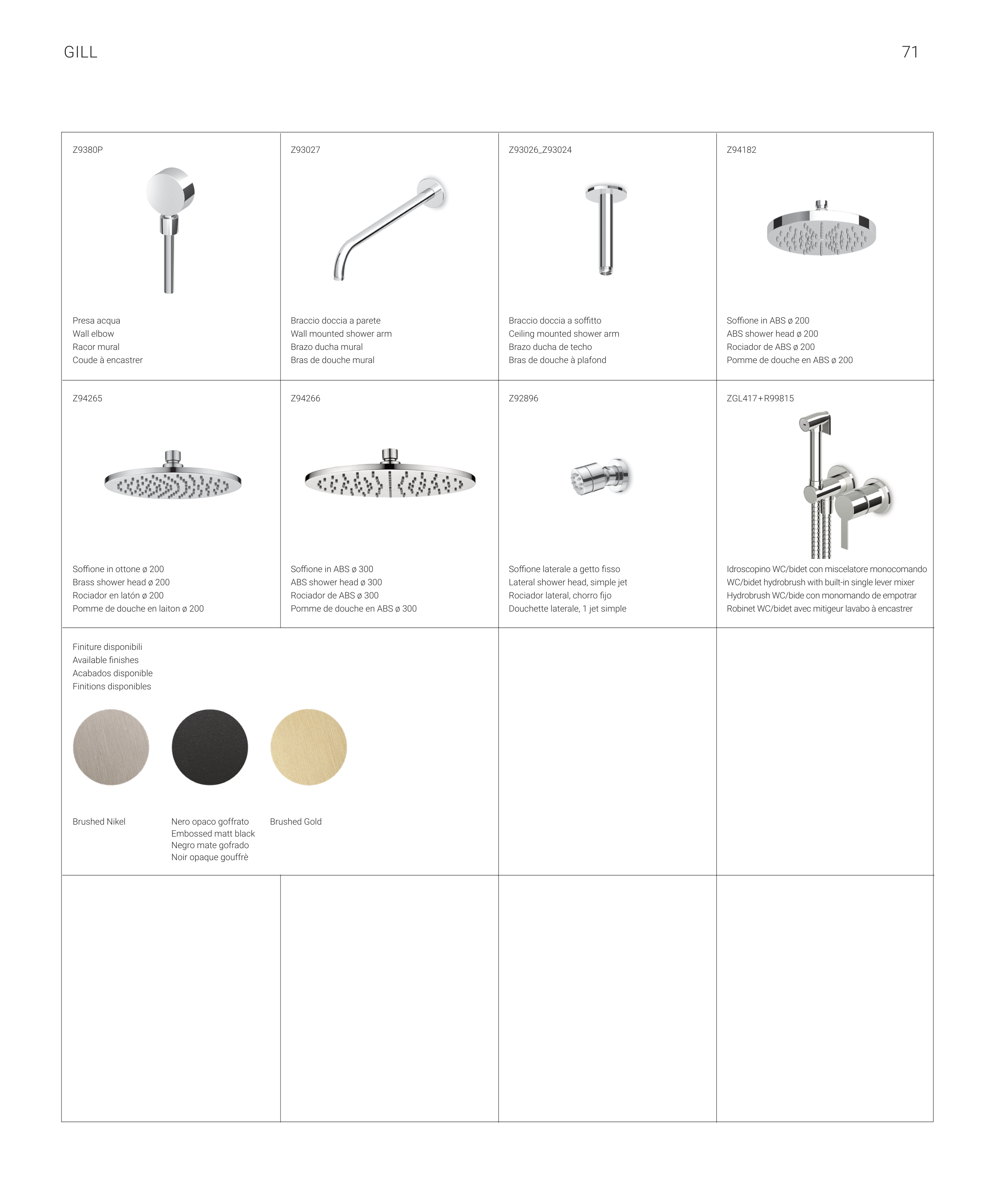 Available finishes