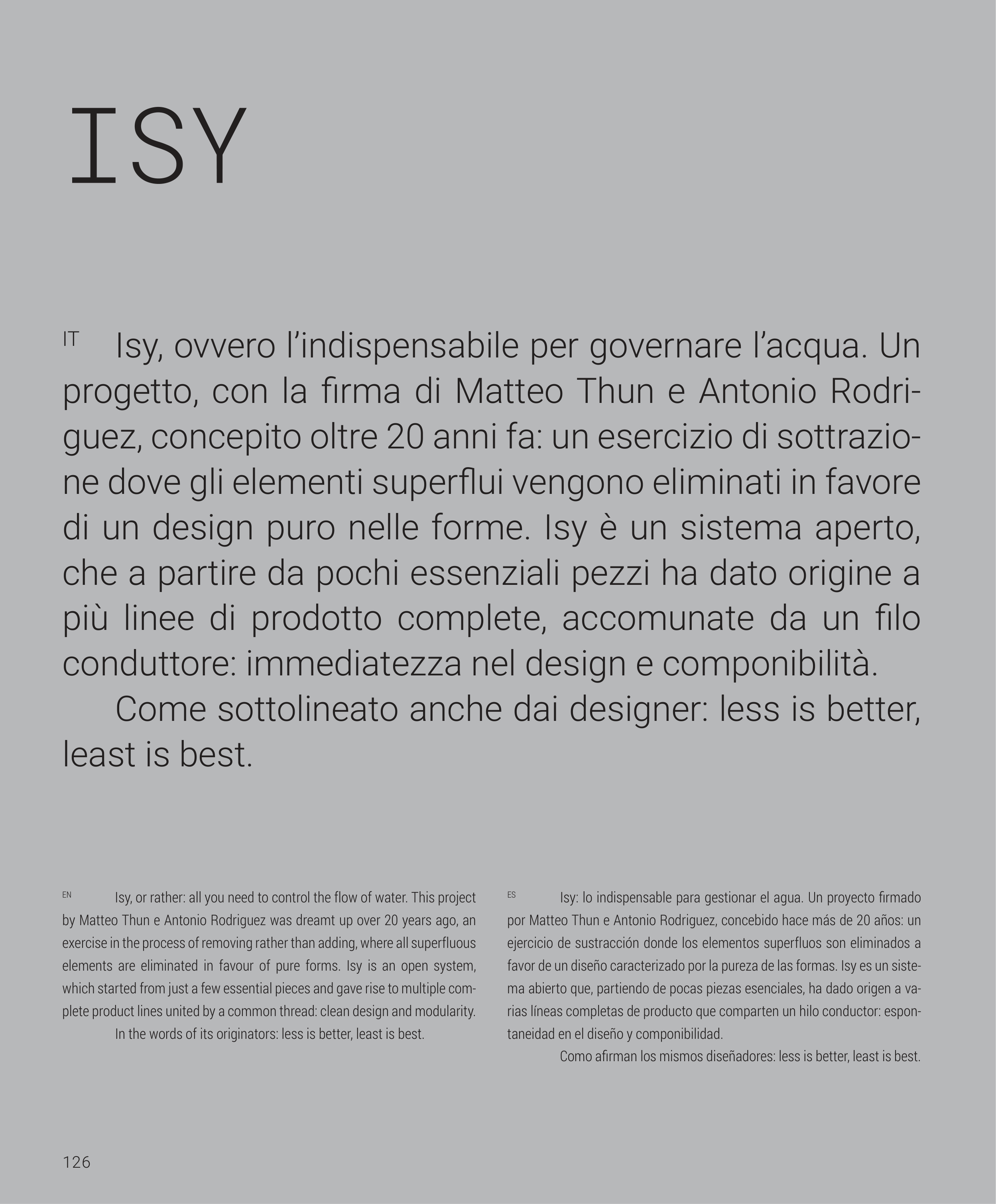 favor de un diseño caracterizado por la pureza de las formas. Isy es un siste-