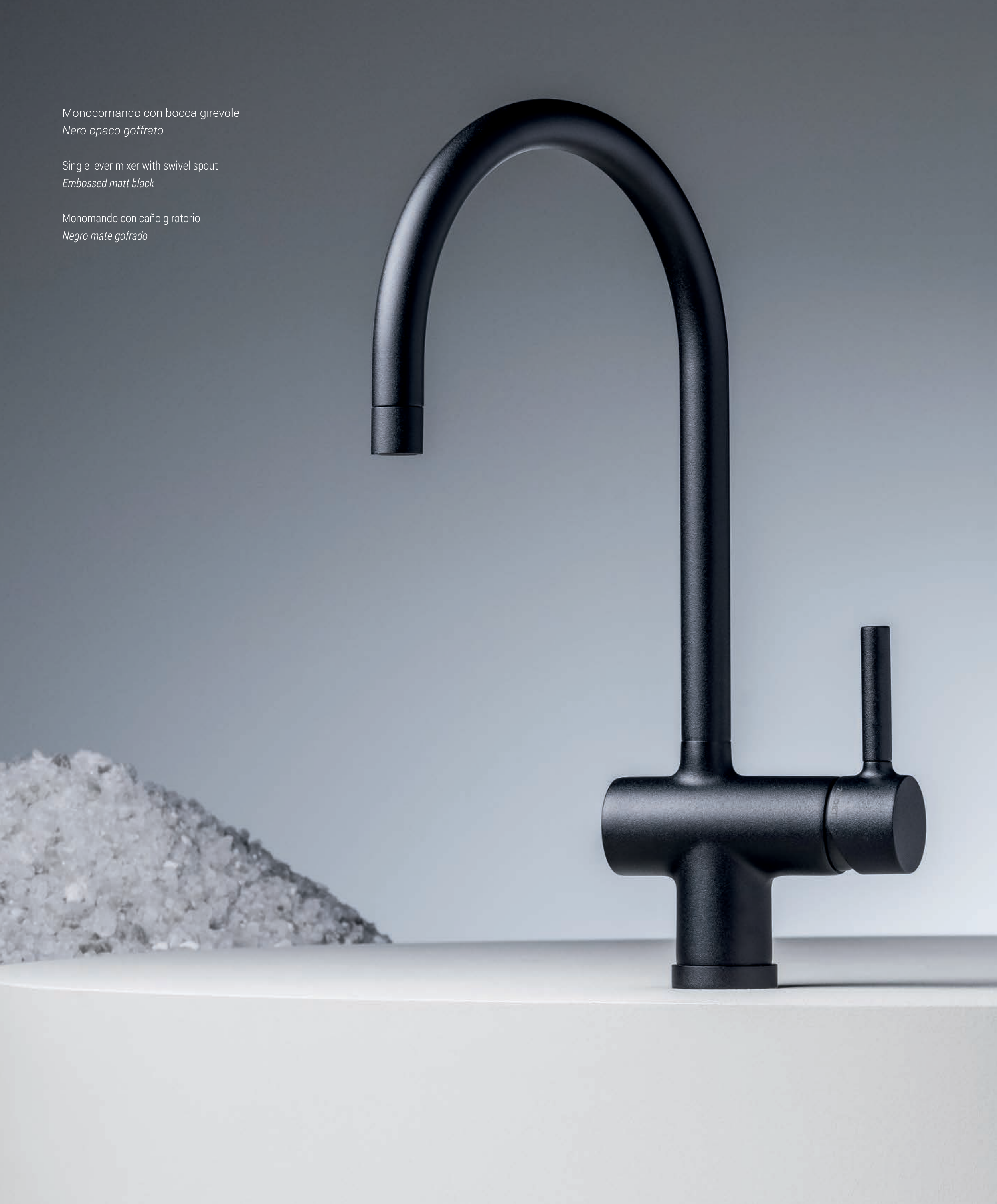 Monocomando con bocca girevole Nero opaco goffrato Single lever mixer with swivel spout Embossed matt black Monomando con caño giratorio Negro mate gofrado